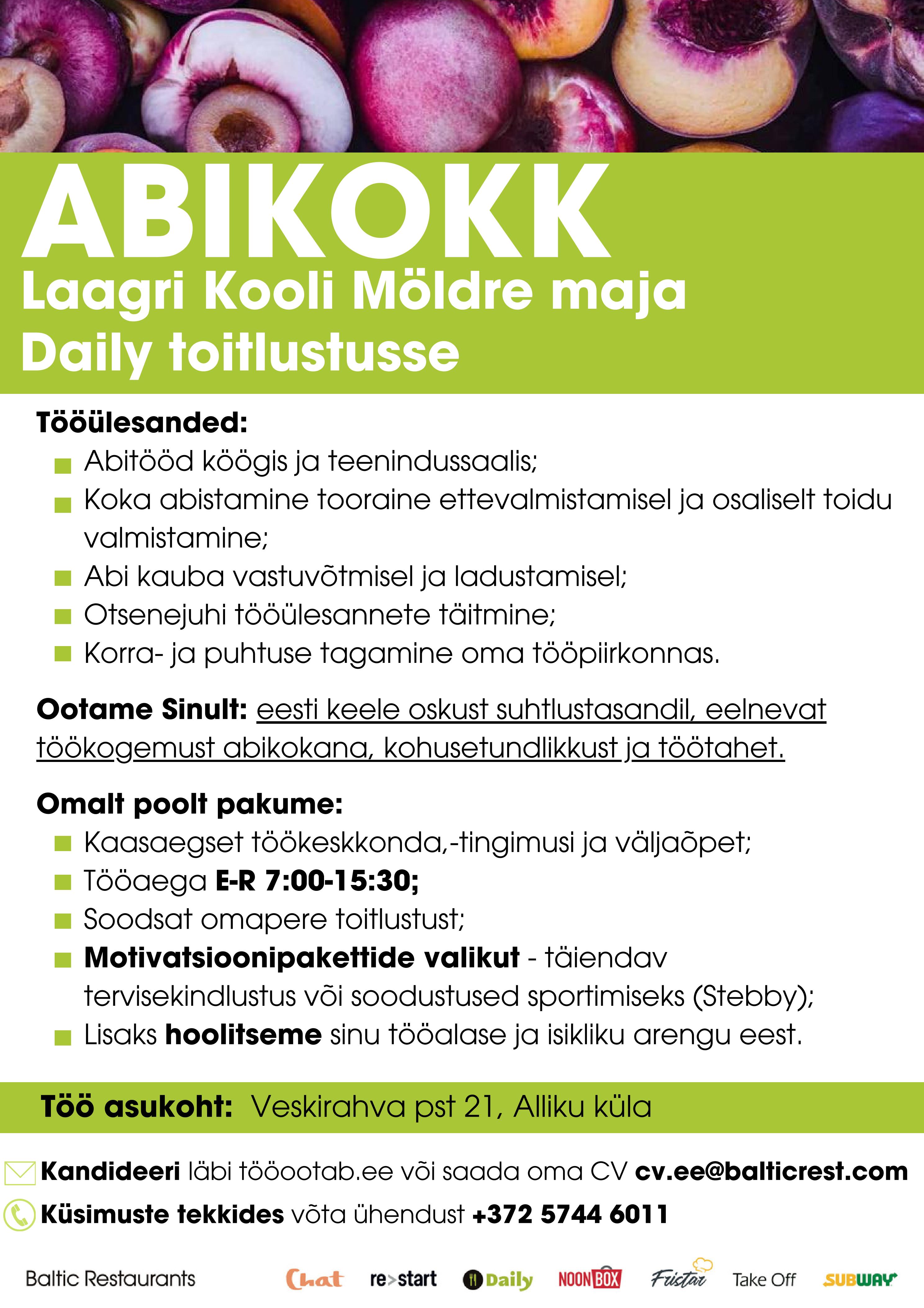 Baltic Restaurants Estonia alustas oma tegevust Eestis 1993. aastal. Peamine äritegevus on seotud igapäevase personali- ja õpilastoitlustusega ning kaubanduskeskuste kohvikutes opereerimisega. Lisaks pakume oma klientidele ka catering teenust. Oleme arenev toitlustusettevõte, mis vastavalt oma teeninduspõhimõtetele pakub oma klientidele lihtsust ja kindlustunnet läbi kvaliteedi ja efektiivsuse. Hetkel töötab Baltic Restaurants Estonia AS ligi 700 inimest ning pakume oma teenust ligi 170 erineval aadressil üle Eesti.