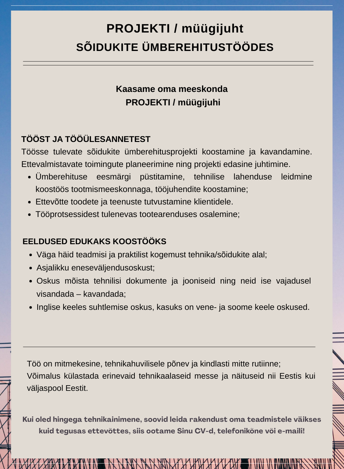 - Väga häid teadmisi ja praktilist kogemust tehnika/sõidukite alal