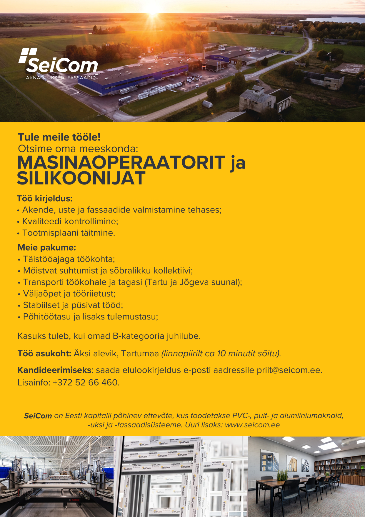 SeiCom is an Estonian capital based family business founded by two brothers, Ahti Sei and Priit Sei.SeiCom started in 2002 as a manufacturer of PVC windows and doors. Over the years SeiCom has developed constantly and become the only company in Estonia to offer all window and door solutions PVC, wood, wood-aluminium and fullaluminium.