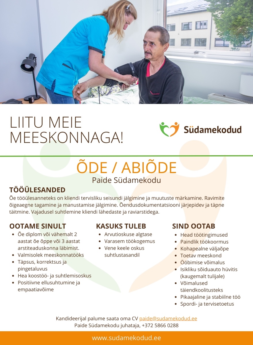 - Õe diplom või vähemalt 2 aastat õe õppe või 3 aastat arstiteaduskonna läbimist.