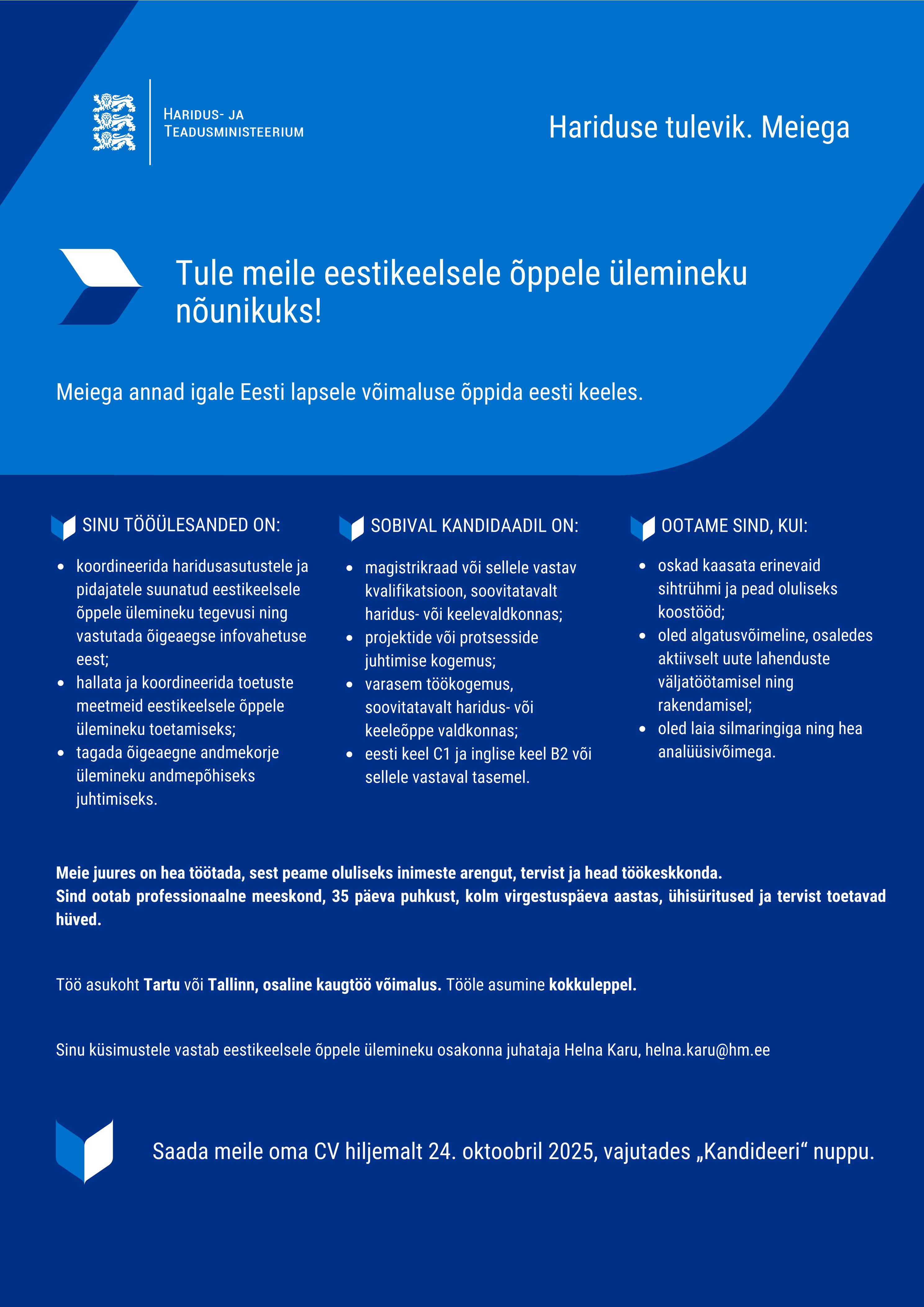 Eestikeelsele õppele ülemineku arendustegevuse projektijuht