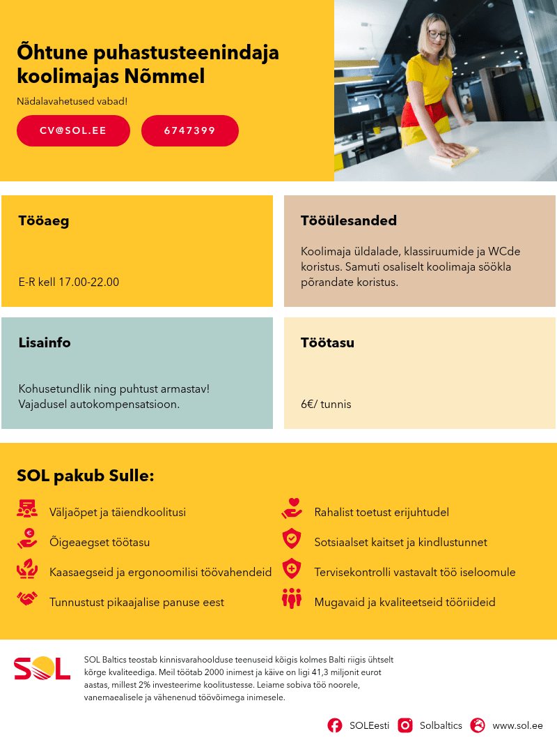 SOL Baltics teostab kinnisvarahoolduse teenuseid kõigis kolmes Balti riigis ühtselt kõrge kvaliteediga.