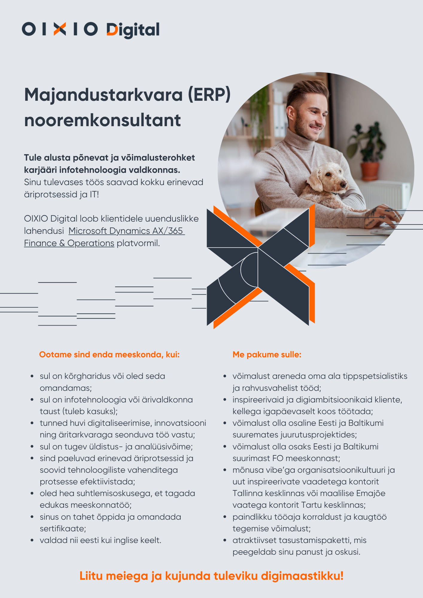 OIXIO Digitali kõige olulisem vara on meie inimesed, kes teevad oma tööd südamega. Uued väljakutsed on need, mis meid käivitavad ja seeläbi annavad võimaluse korda saata midagi olulist. Lisaks mõtleme alati, kas on võimalik teha asju paremini, alati ootuseid ületades ja mitte leppides keskpärasusega.