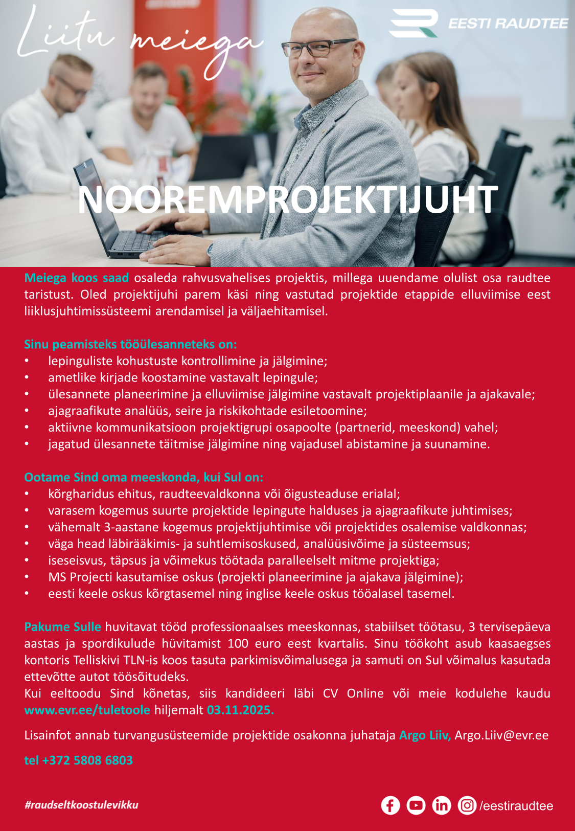 Meiega koos saad osaleda rahvusvahelises projektis, millega uuendame olulist osa raudteetaristust. Oled projektijuhi parem käsi ning vastutad projektide etappide elluviimise eest liiklusjuhtimissüsteemi arendamisel ja väljaehitamisel. Saad võimaluse siseneda tuleviku tehnoloogia alale ning tuua see Eesti inimeste igapäevaellu.