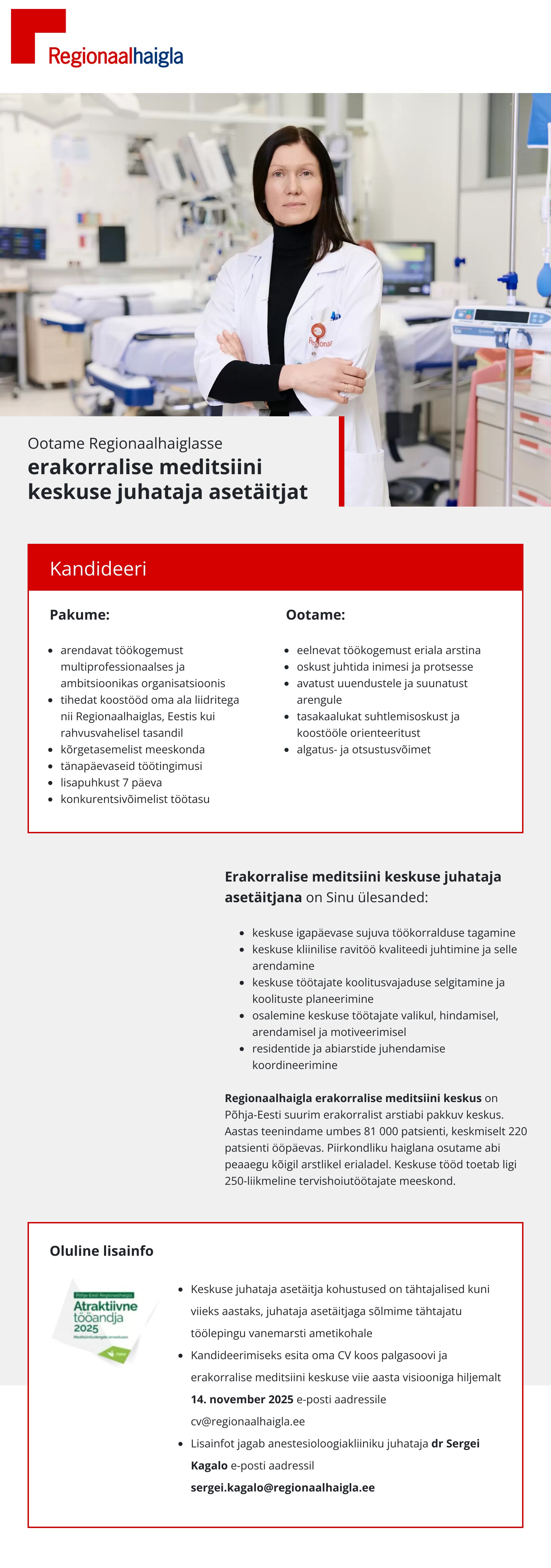 Põhja-Eesti Regionaalhaigla on piirkondlik haigla, mille ülesandeks on olla elanike arstliku turvalisuse tagaja ning kompetentsikeskus Põhja-Eesti haiglavõrgustikule ja tervishoiusüsteemile. Regionaalhaigla koosseisus on seitse kliinikut, kuhu kuuluvad 32 kõrgetasemelist erialakeskust ning töötab enam kui 4000 inimest. Regionaalhaigla on Eesti suurim traumakeskus, Põhja-Eesti suurim südamekeskus ja psühhiaatriakeskus ning haiglas osutatakse laiapõhjalist vähiravi rohkem kui pooltele vähihaigetele Eestis.
