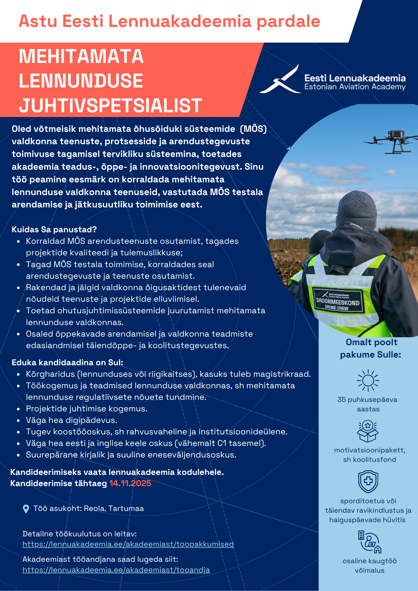 Lisahüved: Väärtustame Sinu tööd hea motivatsioonipaketiga (mh koolitusfond), pakume pikemat põhipuhkust (35 kalendripäeva) ning toetame Sinu tervist (haigushüvitis teisest päevast 100%, sporditoetus või tööandja ravikindlustus).