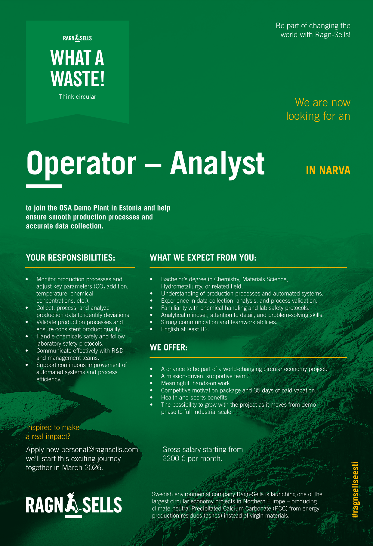 Ragn-Sells on juhtiv keskkonna- ja ringmajandusettevõte Põhjamaades. Meie eesmärk on olla 2030. aastaks kliimapositiivne ettevõte ja juhtida ühiskonna üleminekut ringmajandusele. Seda eesmärki silmas pidades oleme korraldanud kogu oma tänase äritegevuse.