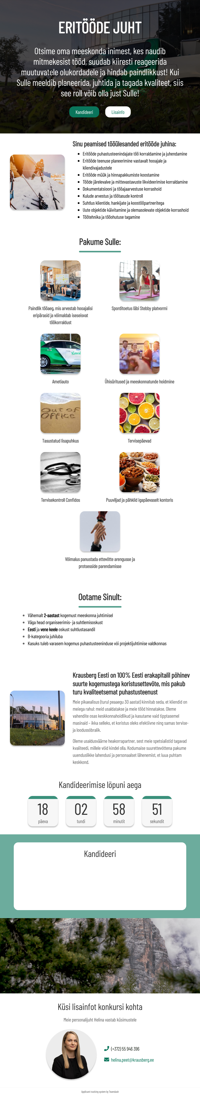 Lisahüved: Paindlik tööaeg, sporditoetus, ametiauto, ühisüritused, lisapuhkus.