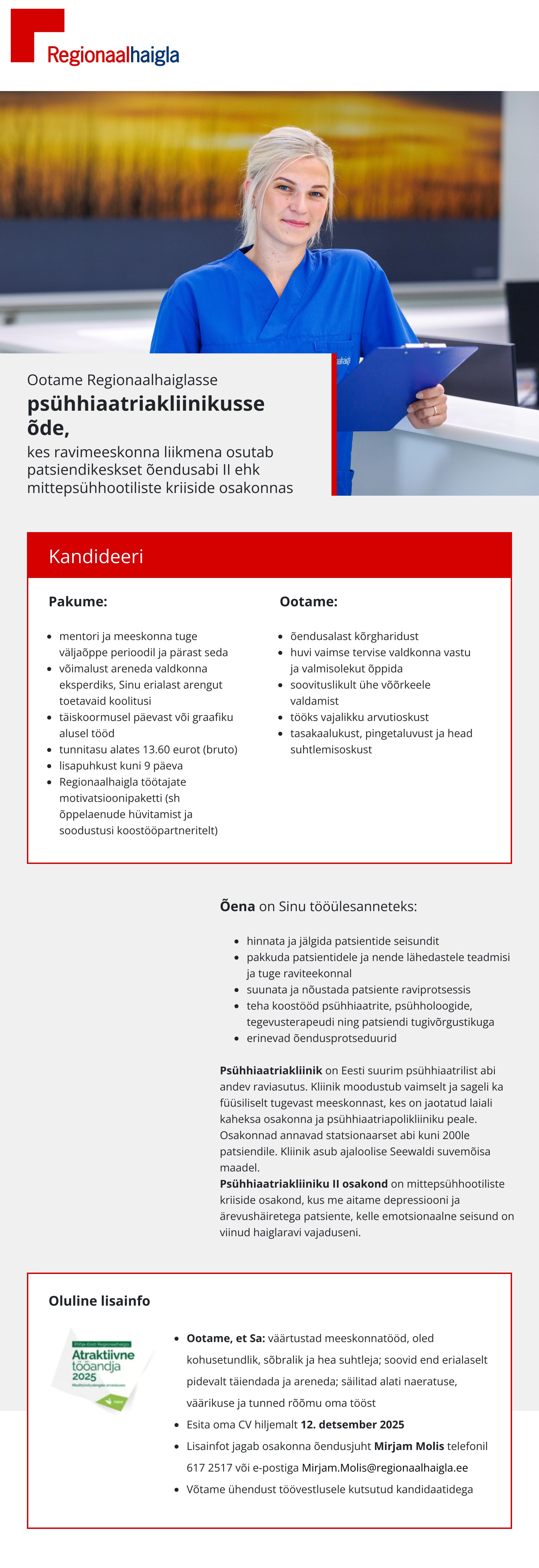 Põhja-Eesti Regionaalhaigla on piirkondlik haigla, mille ülesandeks on olla elanike arstliku turvalisuse tagaja ning kompetentsikeskus Põhja-Eesti haiglavõrgustikule ja tervishoiusüsteemile. Regionaalhaigla koosseisus on seitse kliinikut, kuhu kuuluvad 32 kõrgetasemelist erialakeskust ning töötab enam kui 4000 inimest. Regionaalhaigla on Eesti suurim traumakeskus, Põhja-Eesti suurim südamekeskus ja psühhiaatriakeskus ning haiglas osutatakse laiapõhjalist vähiravi rohkem kui pooltele vähihaigetele Eestis.