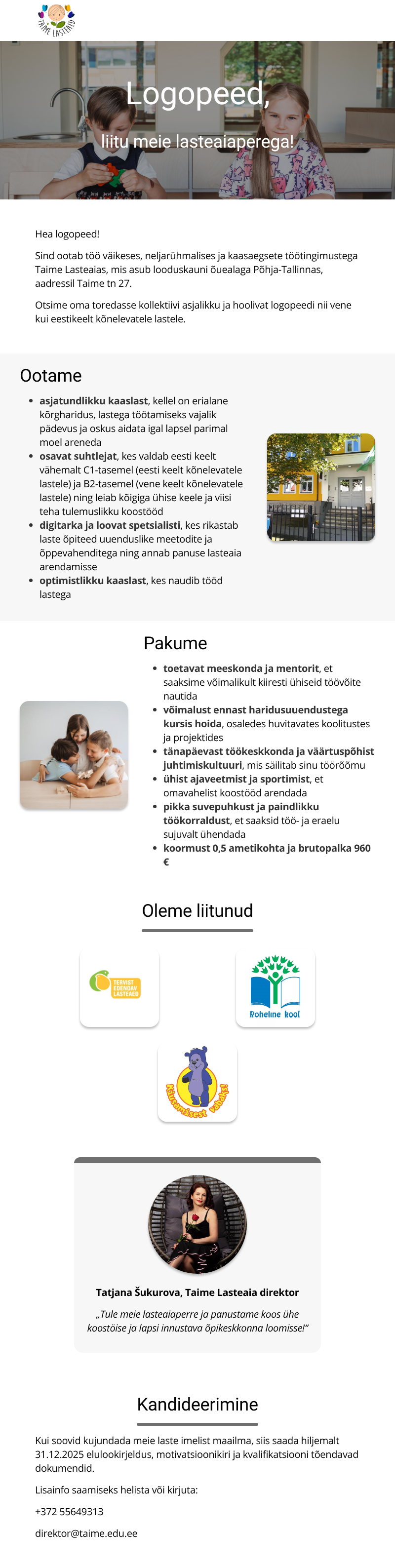 Selle ametikoha keskmise palga info leiad aadressilt palgad.ee.