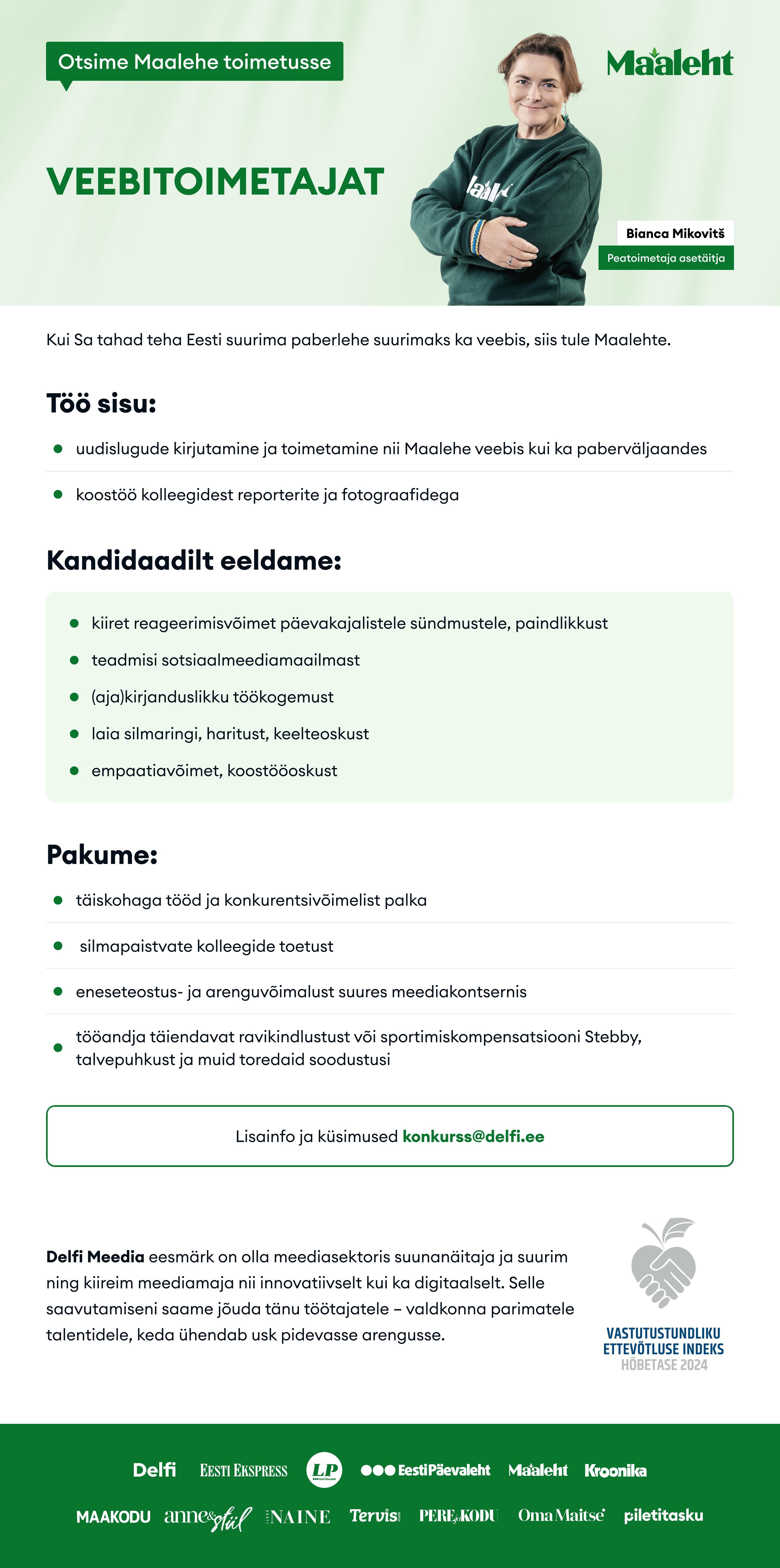 Selle ametikoha keskmise palga info leiad aadressilt palgad.ee.
