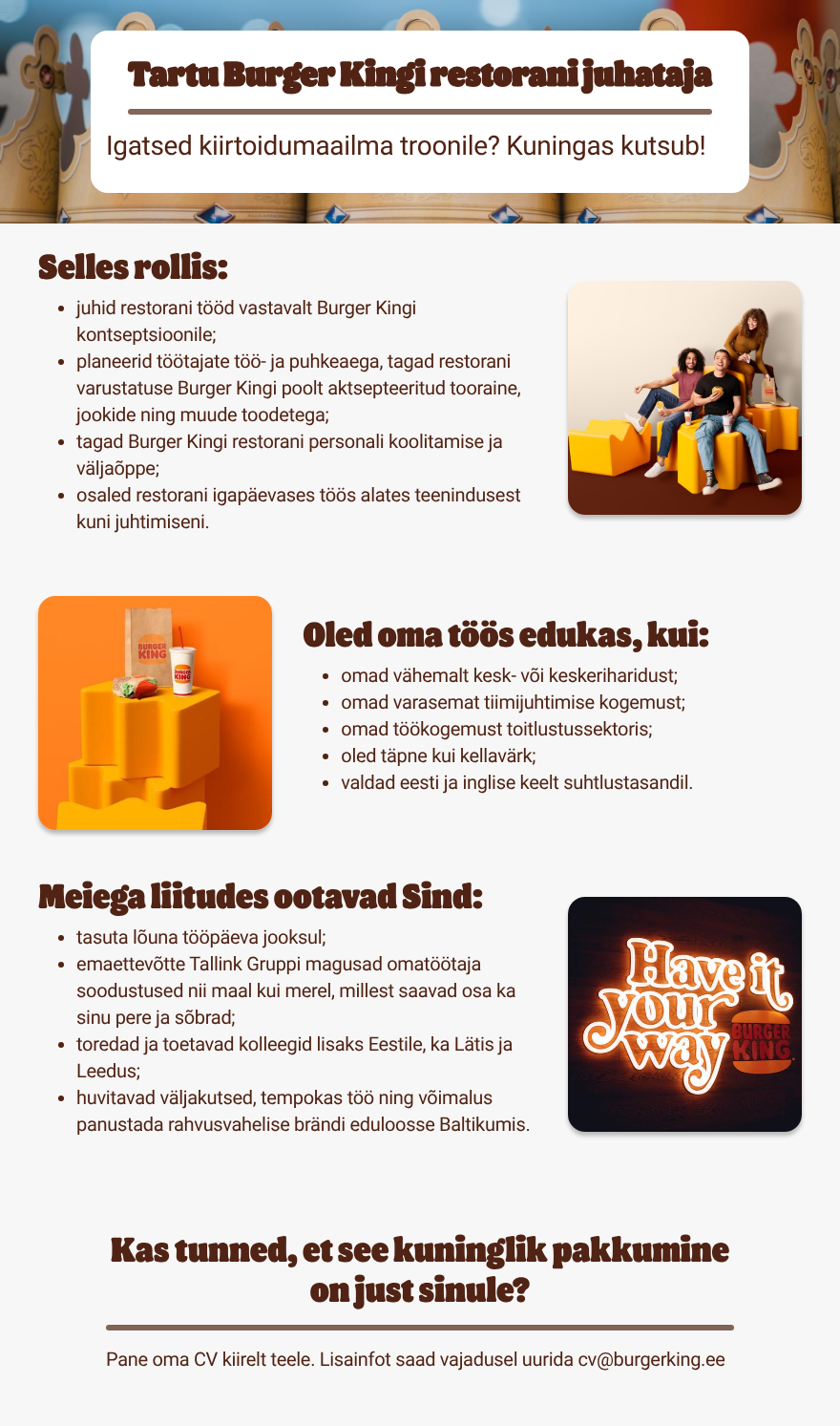 Võimalusi kaasa mõelda, ära teha ja koos ettevõttega areneda on väga palju.