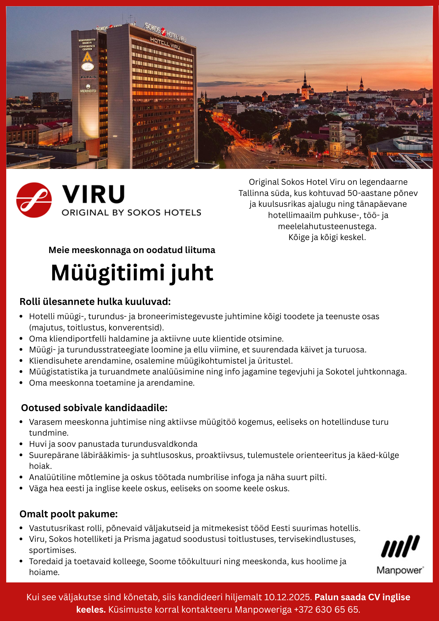 Manpower on üks tunnustatumaid personaliettevõtteid maailmas. Meil on üle 75 aasta rahvusvahelist kogemust töötajate värbamise ja renditeenuste alal. Me hoolime inimestest ja sellest, mis rolli mängib töö nende elus. Alates 2004. aastast oleme Eestis aidanud inimestel leida nende elu- ja tööstiiliga sobiva ametikoha. Kui sa alles sisened tööturule, otsid uusi väljakutseid või planeerid karjäärimuutust meie Manpoweris oskame aidata. Unistuste töö leidmine on SINU võimuses.