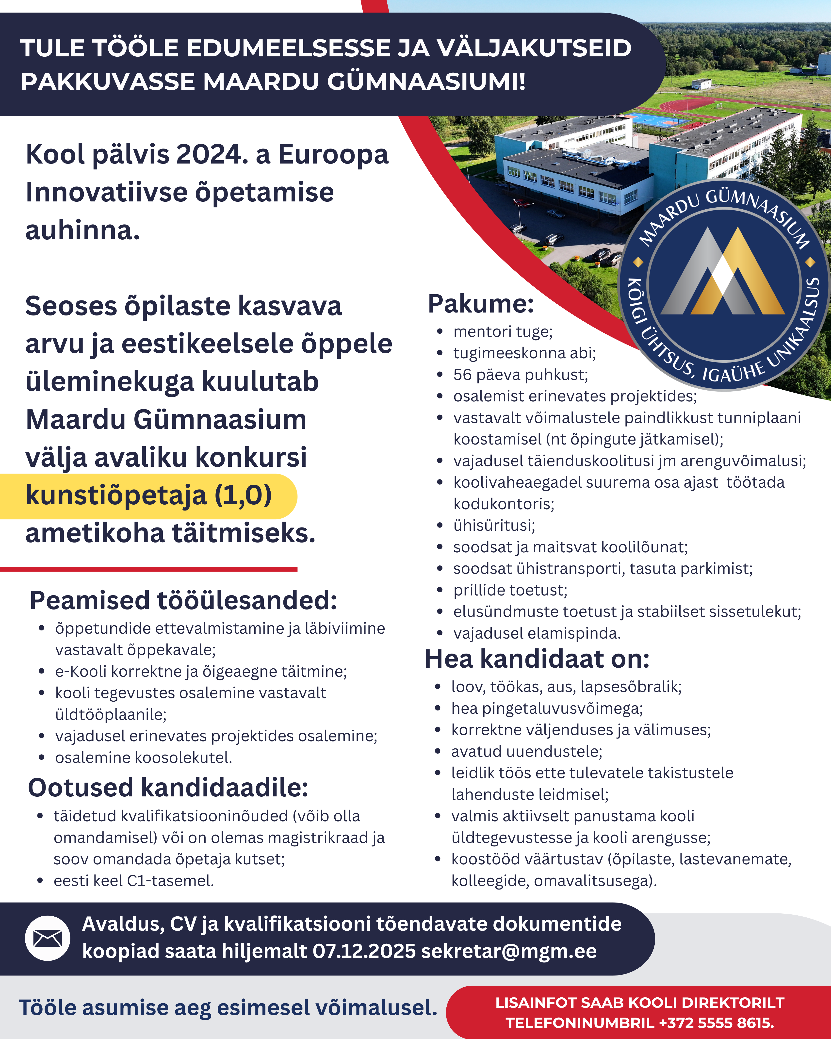 · täidetud kvalifikatsiooninõuded (võib olla omandamisel) või on olemas magistrikraad ja soov omandada õpetaja kutset;