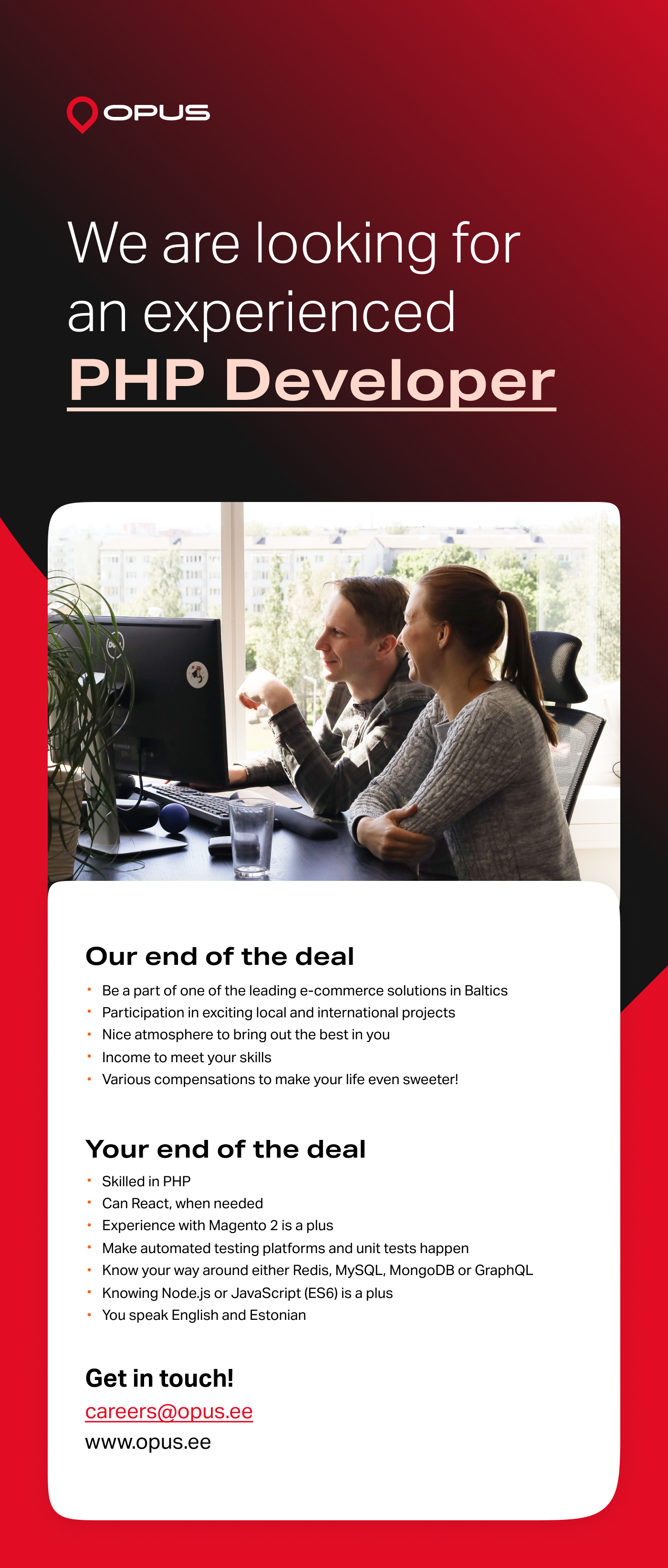 OPUS on pika kogemusega tarkvarateenuseid pakkuv ettevõte. Alustasime oma teekonda 15 aastat tagasi, luues esialgu lihtsamaid veebilahendusi. Aastate jooksul oleme läbinud mitmeid arenguetappe ning kasvanud nii projektide ulatuse, visuaalse stiili kui ka meeskonna suuruse poolest.