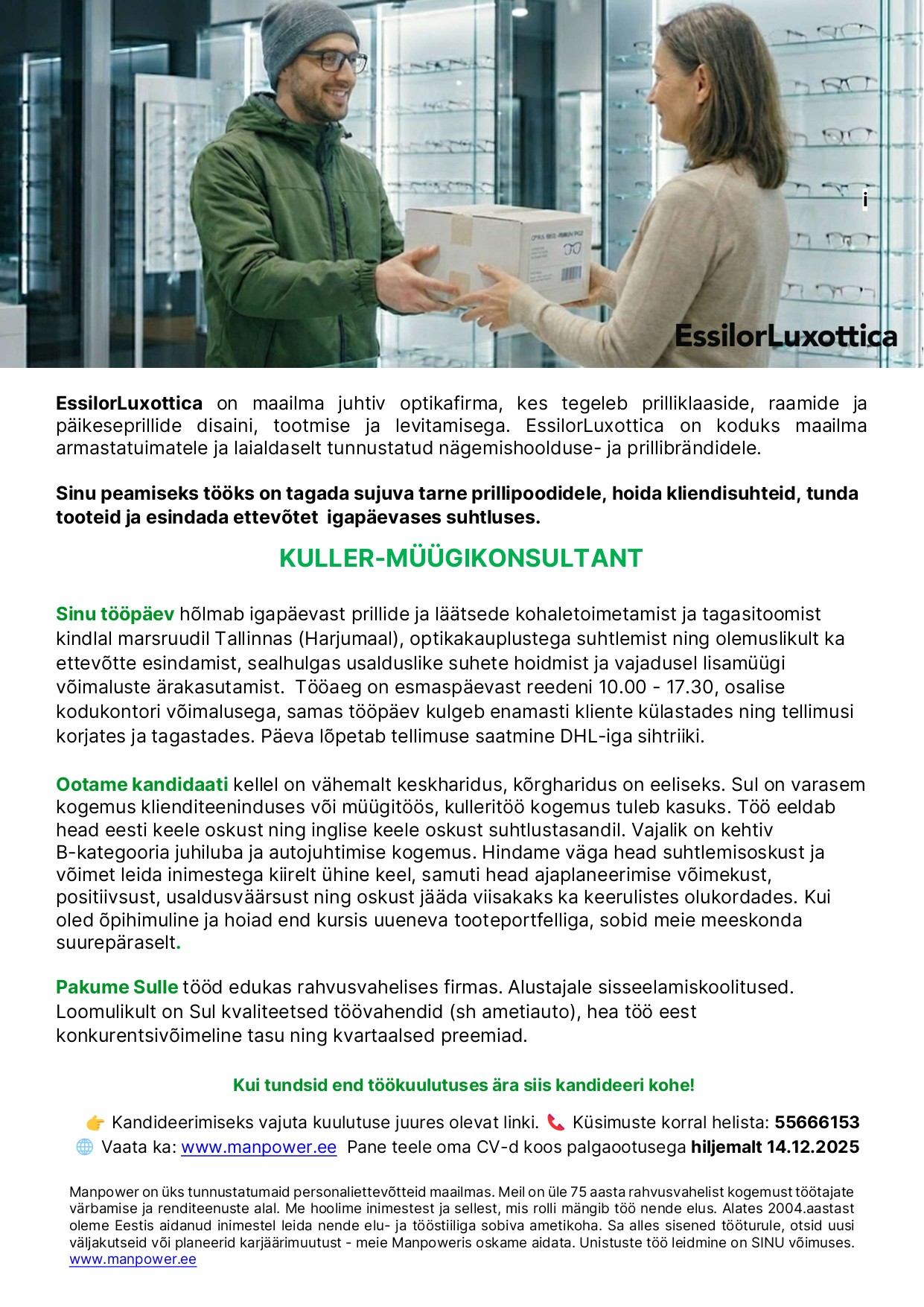 Manpower on üks tunnustatumaid personaliettevõtteid maailmas. Meil on üle 75 aasta rahvusvahelist kogemust töötajate värbamise ja renditeenuste alal. Me hoolime inimestest ja sellest, mis rolli mängib töö nende elus. Alates 2004. aastast oleme Eestis aidanud inimestel leida nende elu- ja tööstiiliga sobiva ametikoha. Kui sa alles sisened tööturule, otsid uusi väljakutseid või planeerid karjäärimuutust meie Manpoweris oskame aidata. Unistuste töö leidmine on SINU võimuses.