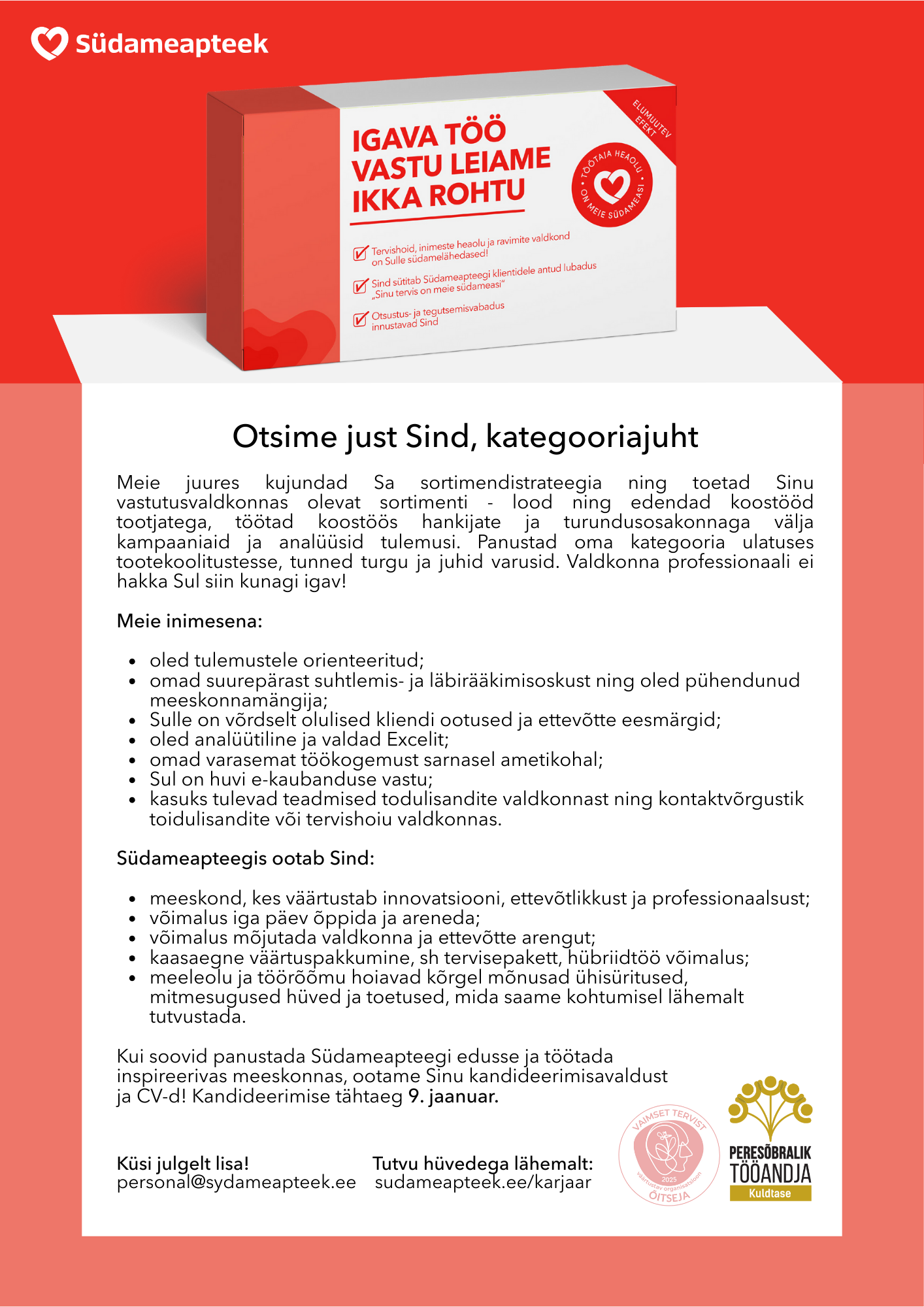 Südameapteek seisab südamega pakutava apteegiteenuse eest. Me pingutame ja teeme alati ühe sammu rohkem, et iga klient tunneks päriselt, et tema tervis on meie südameasi. Siiras lahkus ja personaalne lähenemine aitavad meil südametesse jõuda. Professionaalne suhtumine ja kõrge teeninduskvaliteet tagavad, et me jääme klientide südametesse pikemaks ajaks.