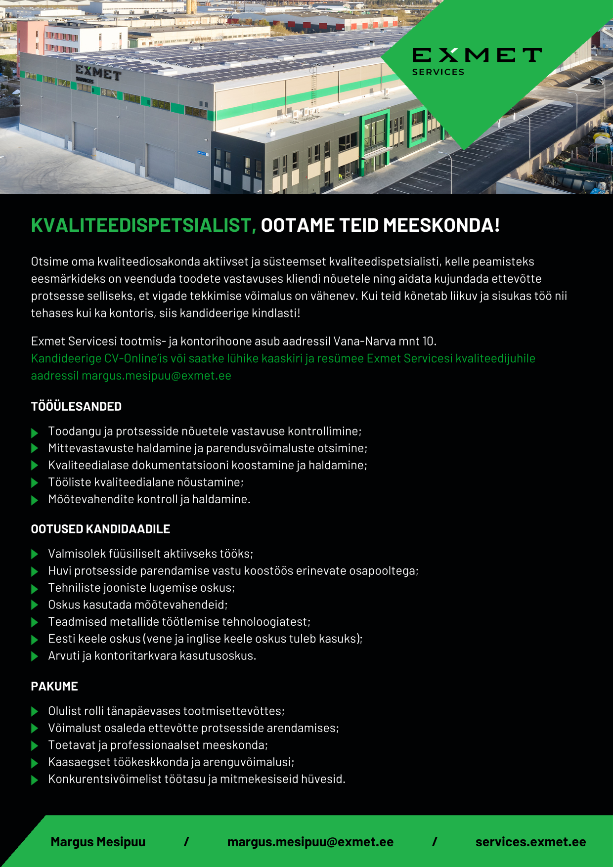 Oleme metallitöötluse eksperdid. Pakume laia valikut lehe- ja profiilitöötluse teenuseid.Meie kliendid on ehitus- ja masinatööstusettevõtted, kes on valdkonna liidrid ning kellel on kvaliteedile suurimad ootused. Exmet Servicesi terasest metallimeistrid suudavad neile ootustele vastata ja need ületadagi. Oluline pole, mida me oleme teinud seni, vaid mida teie ettevõtte vajab täna - just sellest lähtume klientide teenindamisel.