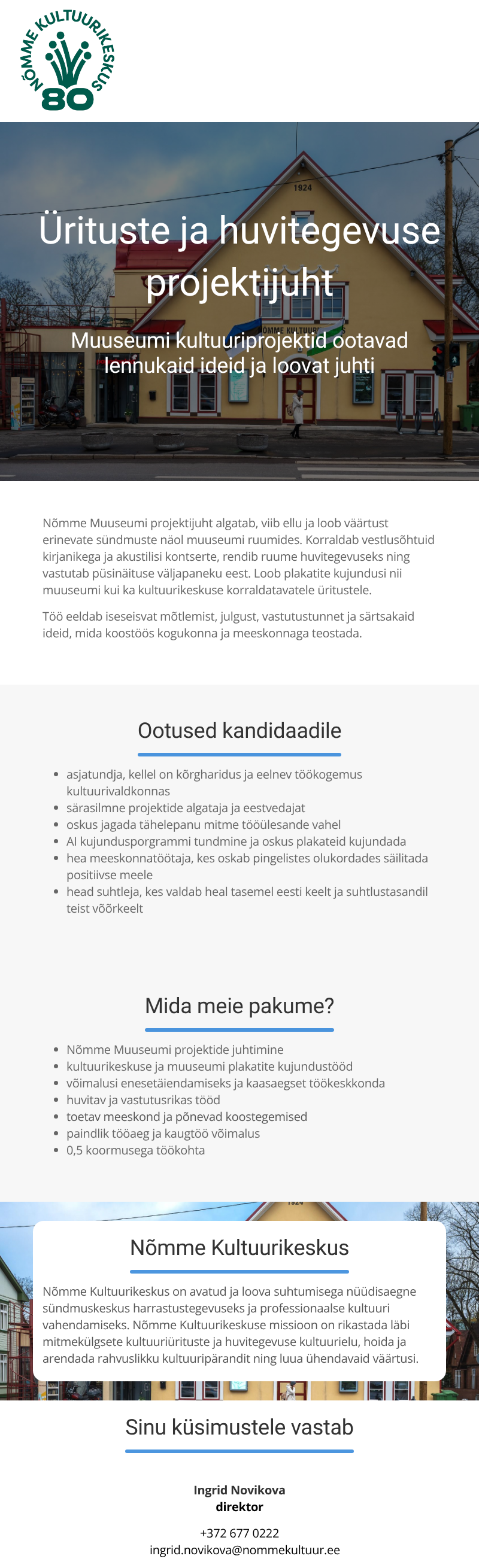 Nõmme Kultuurikeskus on avatud ja loova suhtumisega nüüdisaegne sündmuskeskus harrastustegevuseks ja professionaalse kultuuri vahendamiseks. Nõmme Kultuurikeskuse missioon on rikastada läbi mitmekülgsete kultuuriürituste ja huvitegevuse kultuurielu, hoida ja arendada rahvuslikku kultuuripärandit ning luua ühendavaid väärtusi.