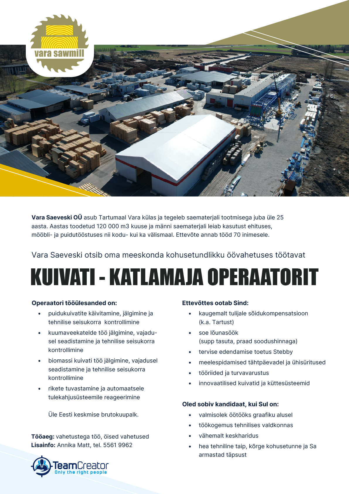 TeamCreatori näol on tegemist ettevõttega, mis tegeleb ettevõtete toetamisega personaliotsingul. Teostame nii eelvalikut (töökuulutuse koostamine ja avaldamine ning kandideerinute osas esmase valiku tegemine), täisotsingut (töökuulutus+sihtotsing), kui ka ainult sihtotsingut. Samuti pakume kandidaatide testimise ning atraktiivsete töökuulutuste koostamise teenust.