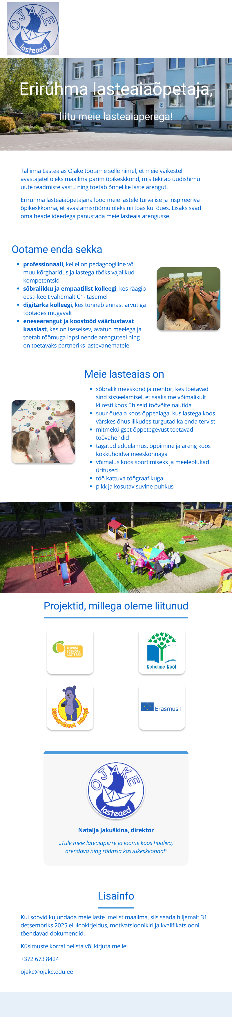 Tallinna Kivimäe Põhikooli I kooliastme väikeklassi õpetaja