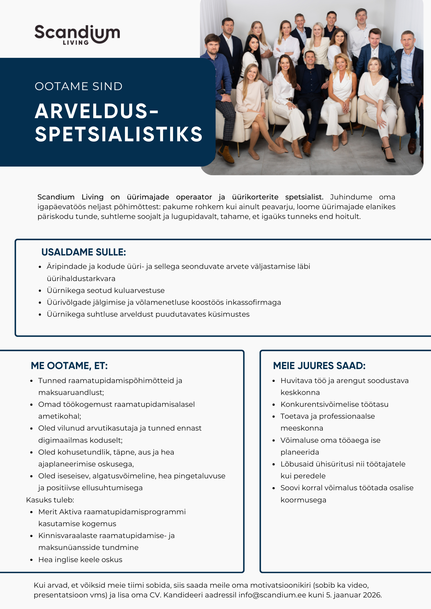 Scandium Kinnisvara on laiahaardeline Eesti kinnisvaraarendaja, kes keskendub terviklike elukeskkondade loomisele, kus kõik eluks vajalik oleks mugavalt lähedal. Scandiumis arendame elukvaliteeti.