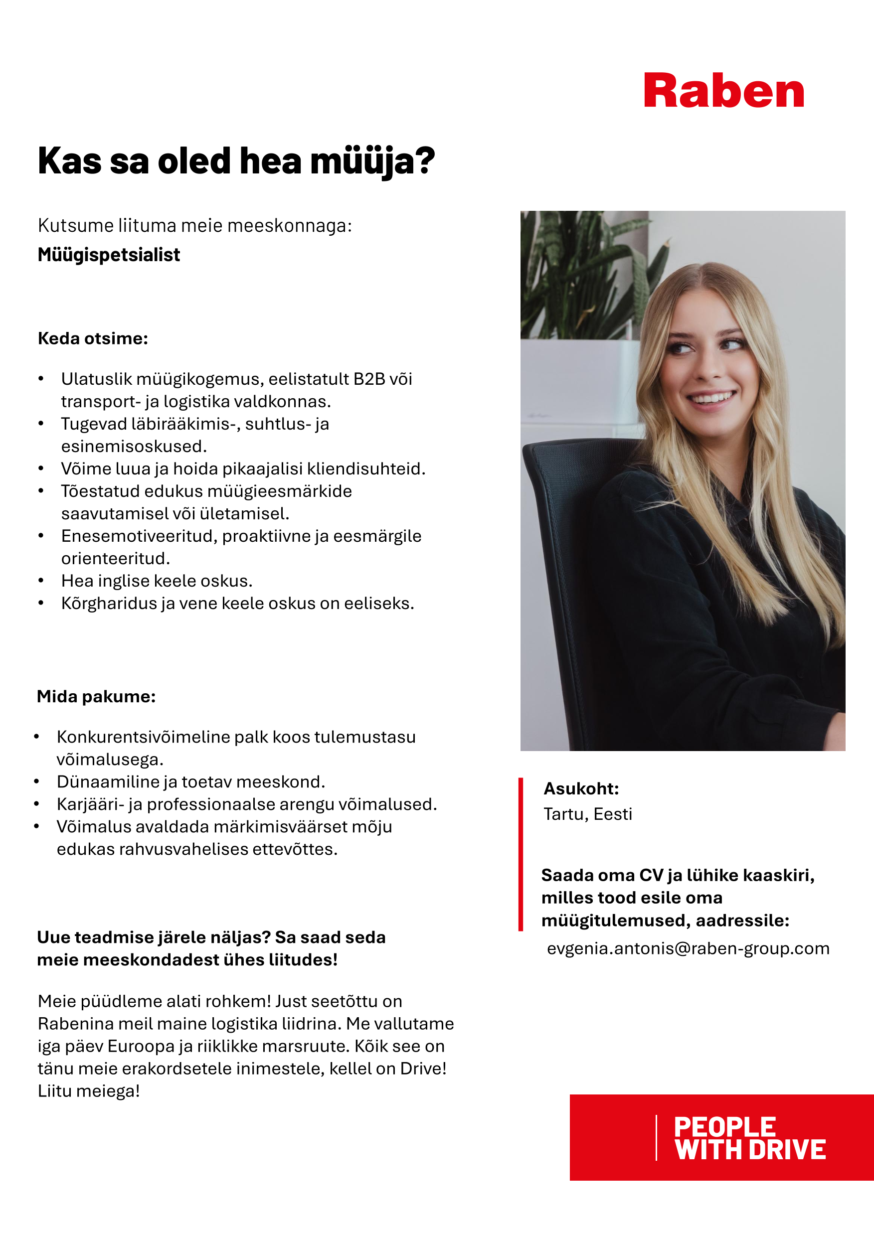 Raben Group pakub osa- ja täiskoormate veoteenuseid nii rahvusvaheliselt kui ka Eesti piires. Ettevõtte ajalugu ulatub 1931. aastasse Hollandis, kuid tänapäeval asub Rabeni peakontor Poolas. Eestis alustasime tegevust 2004. aastal. Rabeni kontorid ja terminalid tegutsevad kümnes riigis: Hollandis, Poolas, Ukrainas, Eestis, Lätis, Leedus, Saksamaal, Tšehhis, Slovakkias, Ungaris, Bulgaaria, Kreekas ja Rumeenias.