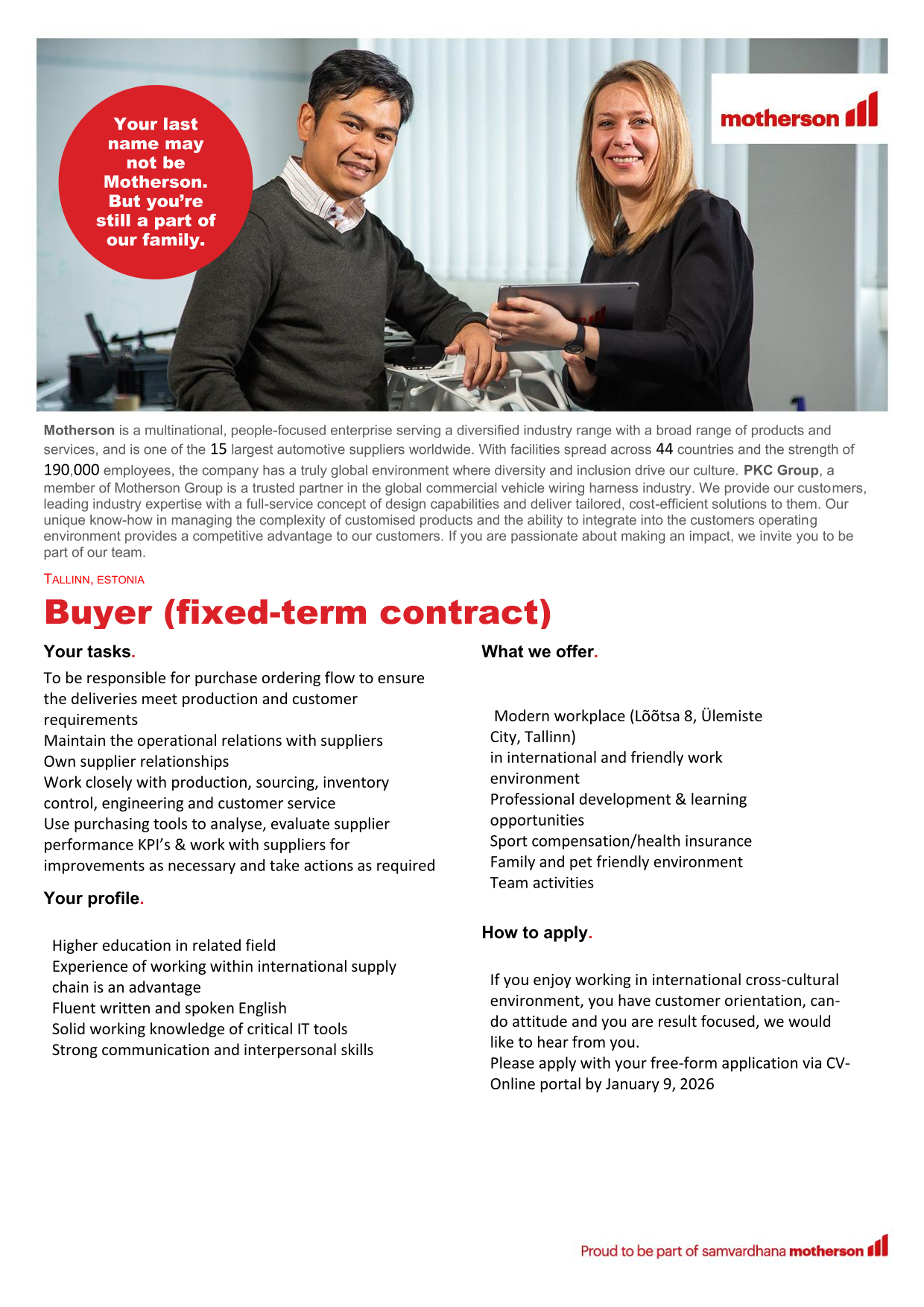PKC Group is a trusted and acknowledged partner in global transportation industry, and a preferred supplier for leading global commercial vehicle and rolling stock brands. The company is a member of the Samvardhana Motherson Group, one of the 25 largest automotive suppliers worldwide. With our worldwide service and production network we are where our key customers need us. PKC Group facilities are located in Brazil, China, Estonia, Finland, Germany, Lithuania, Mexico, Poland, Serbia and USA.