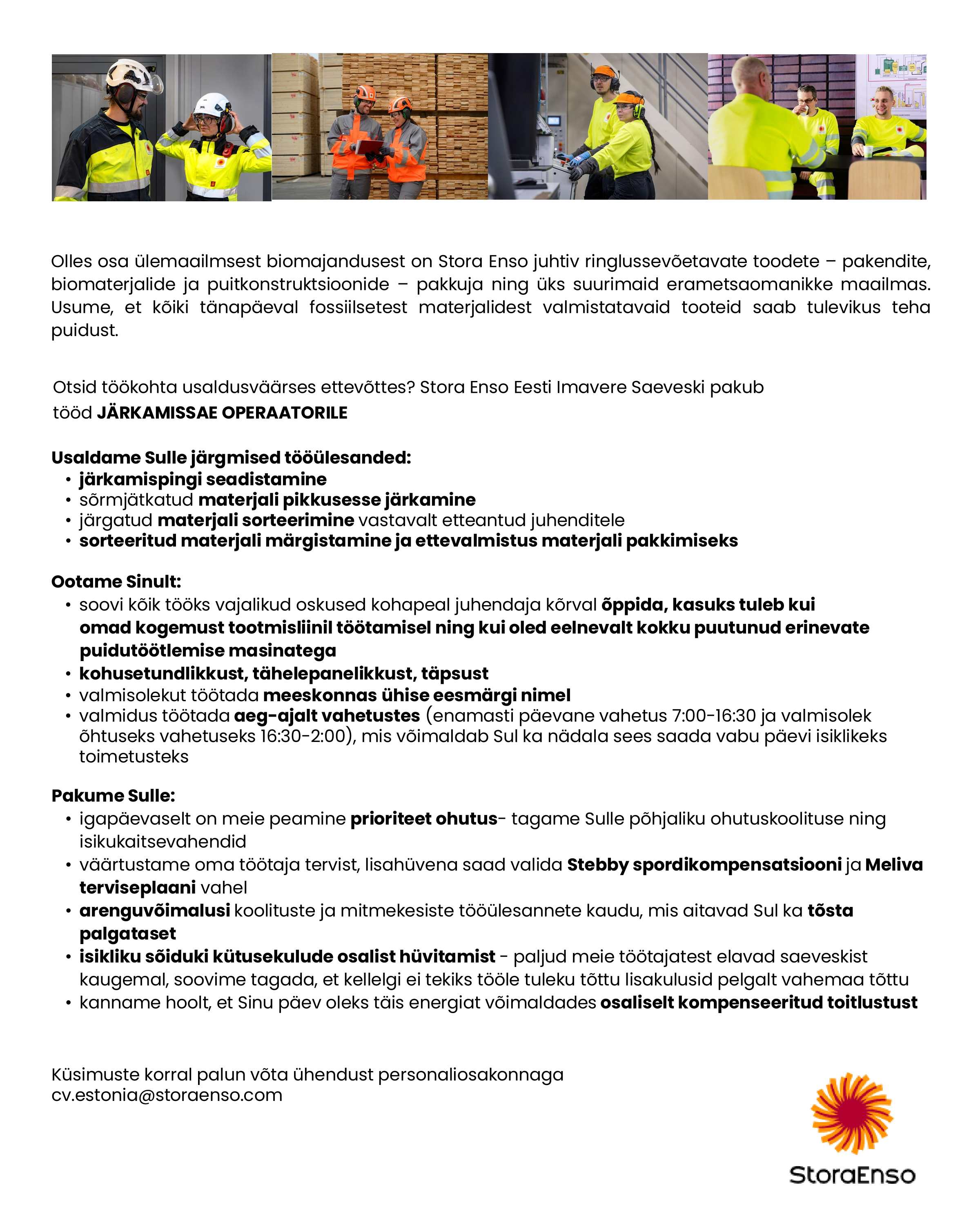 Meie eesmärk "Tee head inimestele ja planeedile. Taastumatute materjalide asendamine taastuvate toodetega" toetab meie usku, et kõike, mida tänapäeval saab teha fossiilidel põhinevate materjalidega, saab tulevikus teha puidust, ja see tõstab esile Stora Enso võimaluse panustada rohelisemasse majandusse.