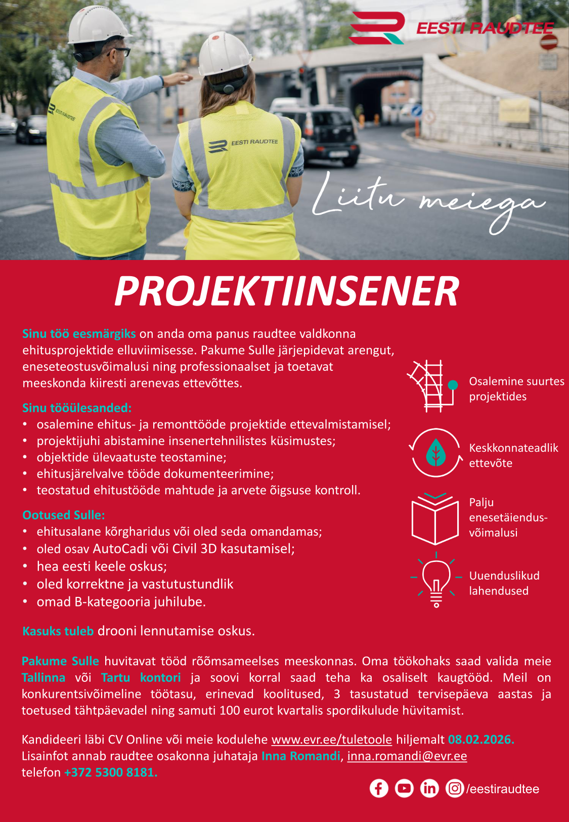 on anda oma panus raudtee valdkonna ehitusprojektide elluviimisesse. Pakume Sulle järjepidevat arengut, eneseteostusvõimalusi ning professionaalset ja toetavat meeskonda kiiresti arenevas ettevõttes.