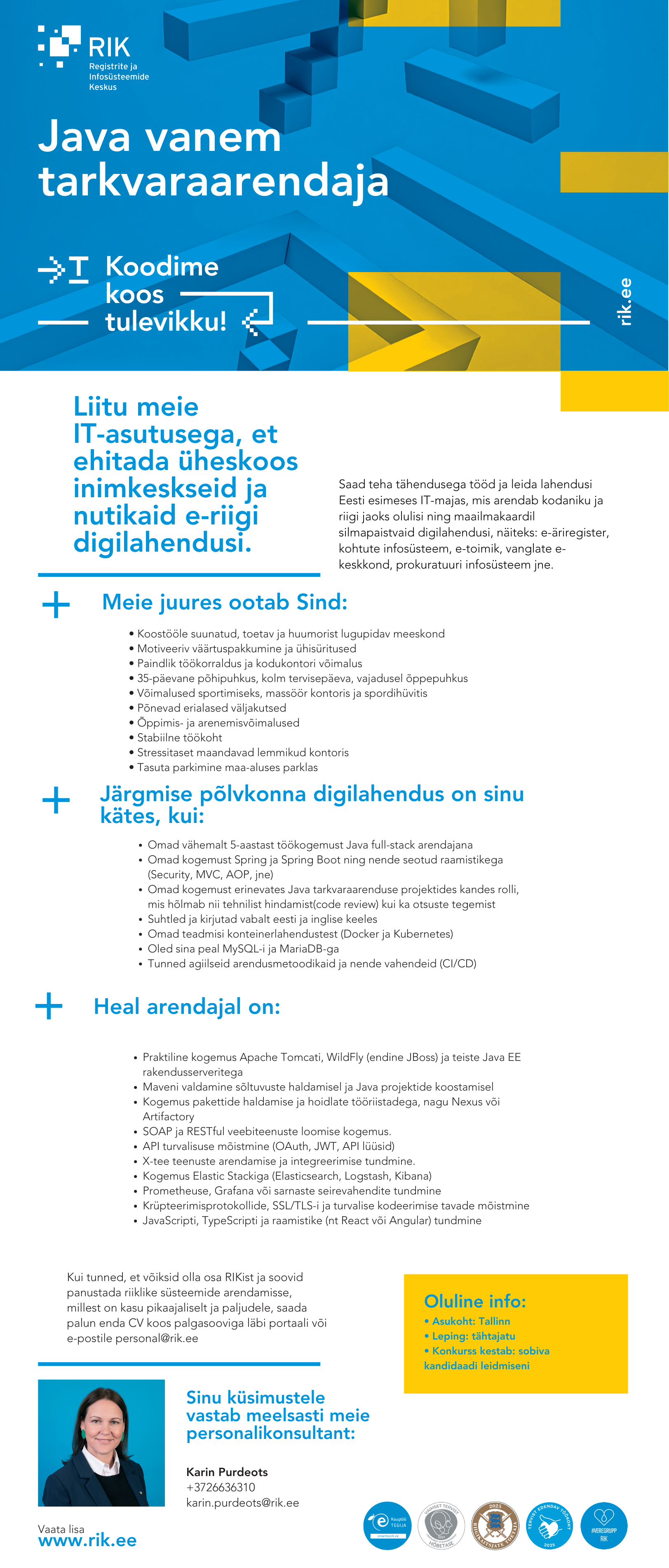 Lisahüved: 35-päevane põhipuhkus, 3 tervisepäeva * Paindlik tööaeg*Ühisüritused, sporditoetus jms