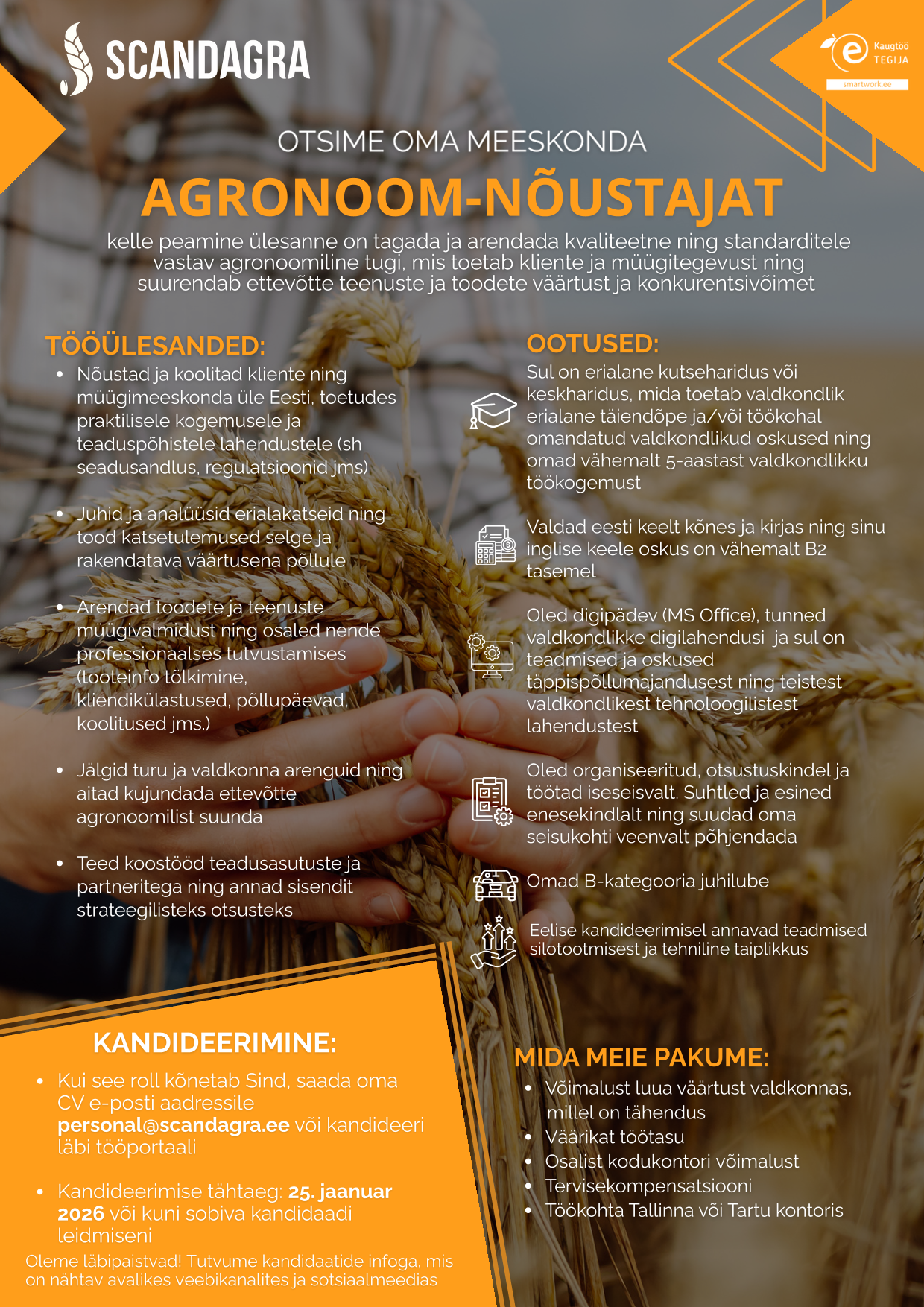 Scandagra Grupi asutasid 2006. aastal Skandinaavia juhtivad põllumajandusühistud DLG ja Lantmännen. Scandagra Eesti AS on osa Scandagra Grupist, kuhu kuulub kuus ettevõtet üle Baltikumi. Oleme Eestis üks suurimaid loomasöödatootjaid, vilja kokkuostjaid ning põllumajandustarvikute ja taimekaitsevahendite müüjaid. Scandagras töötab enam kui 100 inimest üle Eesti, peamiselt Viljandis, Elvas, Tartus, Rakveres ja Harjumaal.