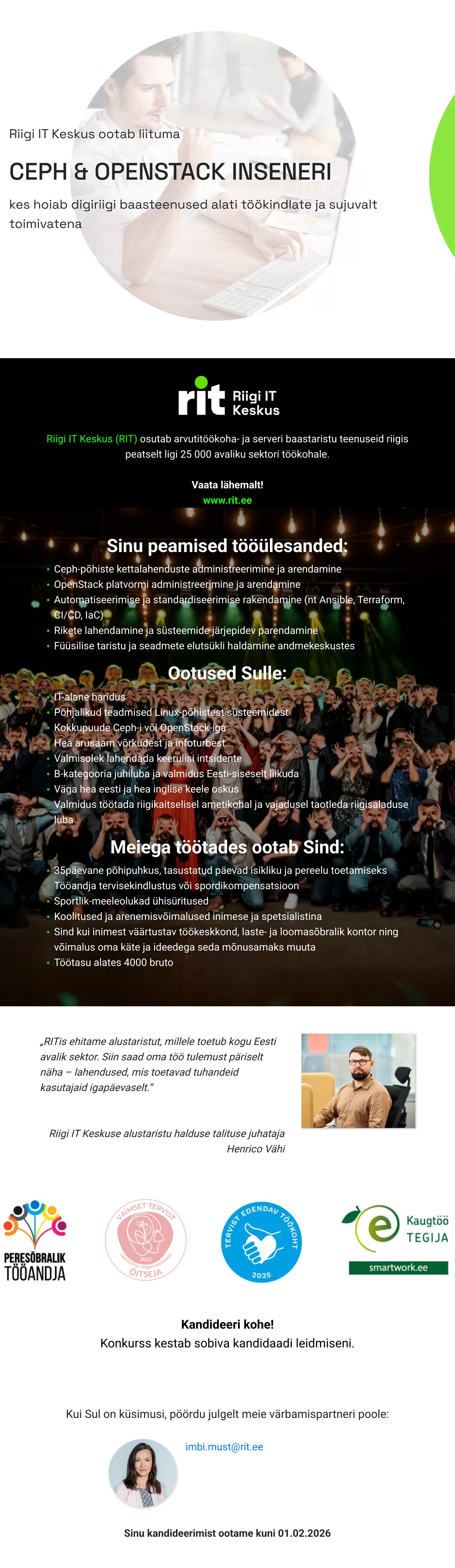 Lisahüved: Tööandja tervisekindlustus, spordihüvitis, koolitused, tervisepäevad, ühisüritused.
