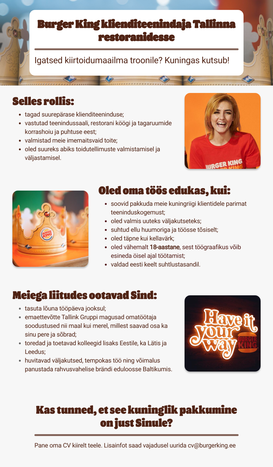 KFC Artius kutsub tiimi KLIENDITEENINDAJAT!