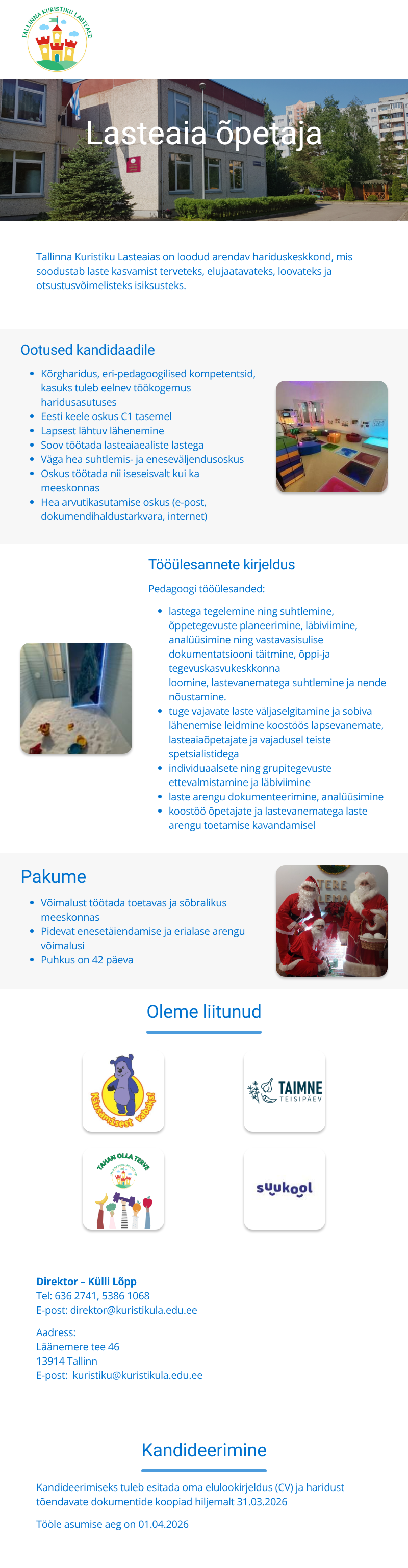 Tallinna Rõõmupesa Lasteaia lasteaiaõpetaja