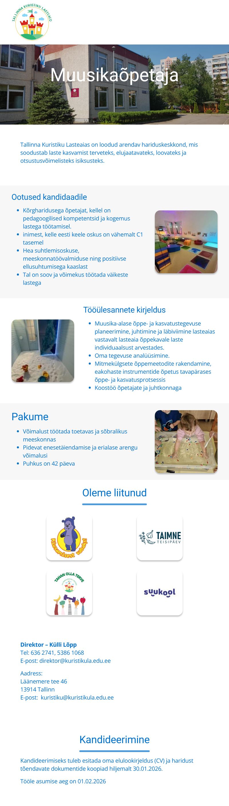 Lasteaia muusikaõpetaja (vanemapuhkuse asendaja)