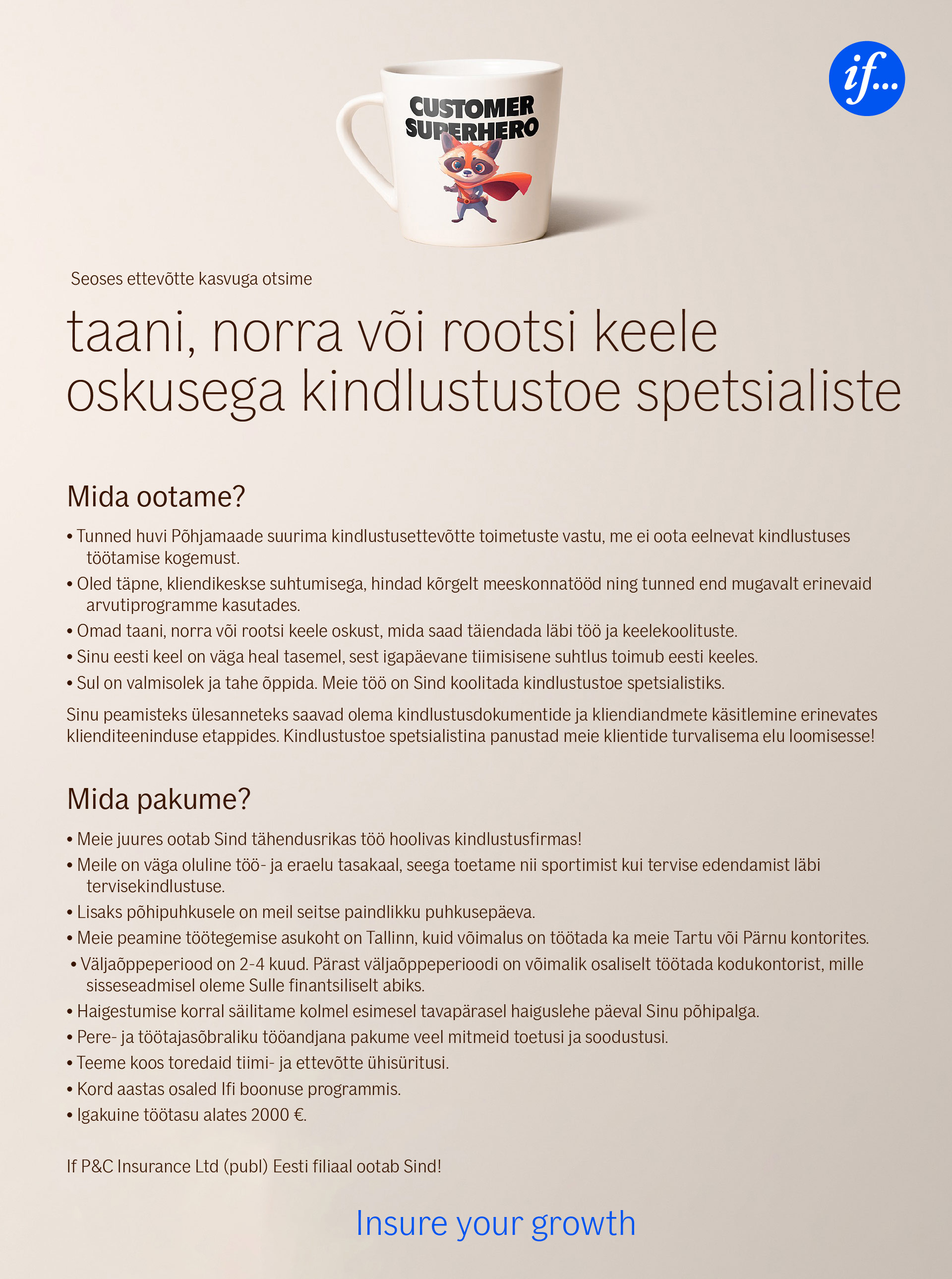 If P&C Insurance on Põhjamaade juhtiv kahjukindlustusselts, kellel on Põhjamaades ja Baltikumis kokku üle 3,6 miljoni kliendi. Balti riikides on If juhtiv ühe kaubamärgi all tegutsev kahjukindlustaja, kes pakub mitmekülgseid kindlustuslahendusi üle 310 000 era- ja ärikliendile Balti riikides. If kuulub Põhjamaade kahjukindlustusgruppi If P&C Insurance Holding Ltd, mille omanik on Sampo Plc. Lisainformatsioon aadressilt www.if.ee.