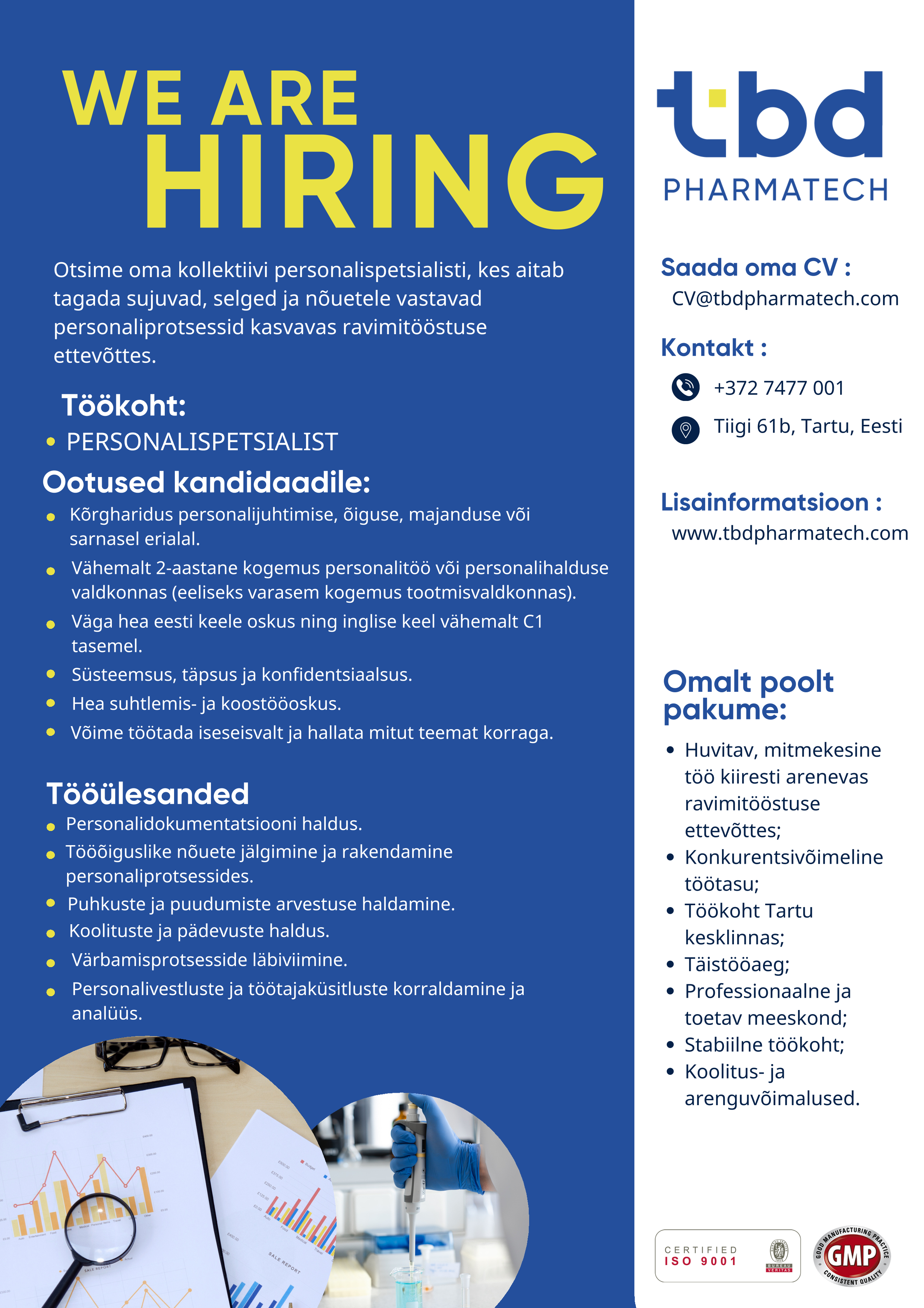 TBD Pharmatech on üks Eesti juhtivaid ja innovaatlisemaid ravimitööstuse firmasid. Oleme spetsialiseerunud ravimi toimeainete väiketootmisele ja arendustööle. Ettevõte on tunnustatud Eesti edukaimaks keemiatööstuse ettevõtteks. TBD Pharmatech OÜ klientideks on biotehnoloogia, farmaatsia ja keemiaettevõtted nii Eestis kui ka välismaal. Ettevõttel on lai partnerite võrgustik kogu maailmas (EL, Šveits, Iisrael, USA, Venemaa, Lõuna-Korea ja Jaapan). Ettevõte kollektiiv on kasvav, sõbralik ning nooruslik. Hetkel töötab ettevõttes 70 inimest.