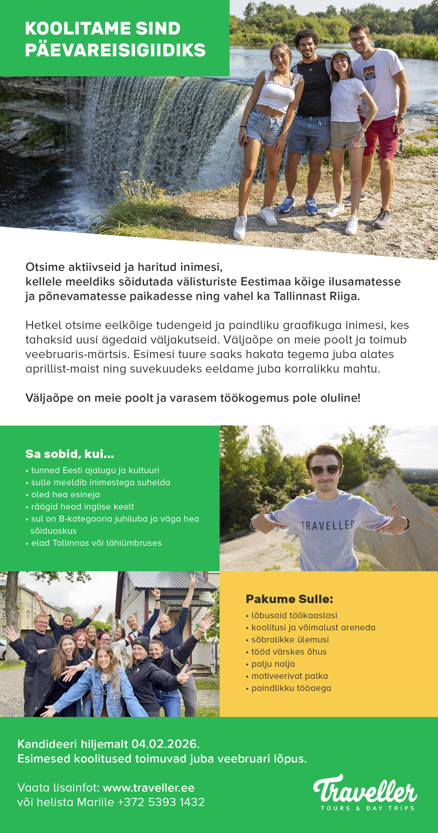 Traveller Tours on 2011 aasta kevadel asutatud ettevõte, mis pakub Eestit väisavatele turistidele arvukalt erinevaid päevareise, jalgratta- ja jalgsiekskursioone algusega Tallinnast näiteks Lahemaa, Paldiski, Haapsalu ja Narva erinevatesse piirkondadesse. Lisaks korraldame vaatamisväärsuste bussi Tallinnast Riiga.