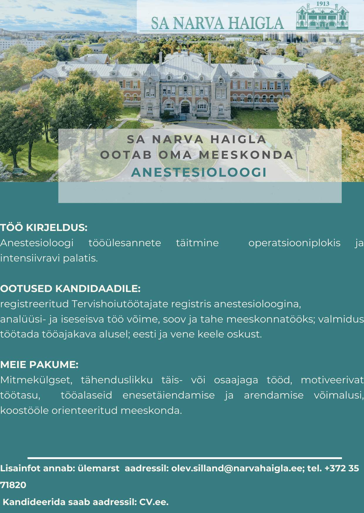 Narva Haigla missiooniks on teaduspõhise meditsiini kestmine ja areng Ida-Virumaal koostöös