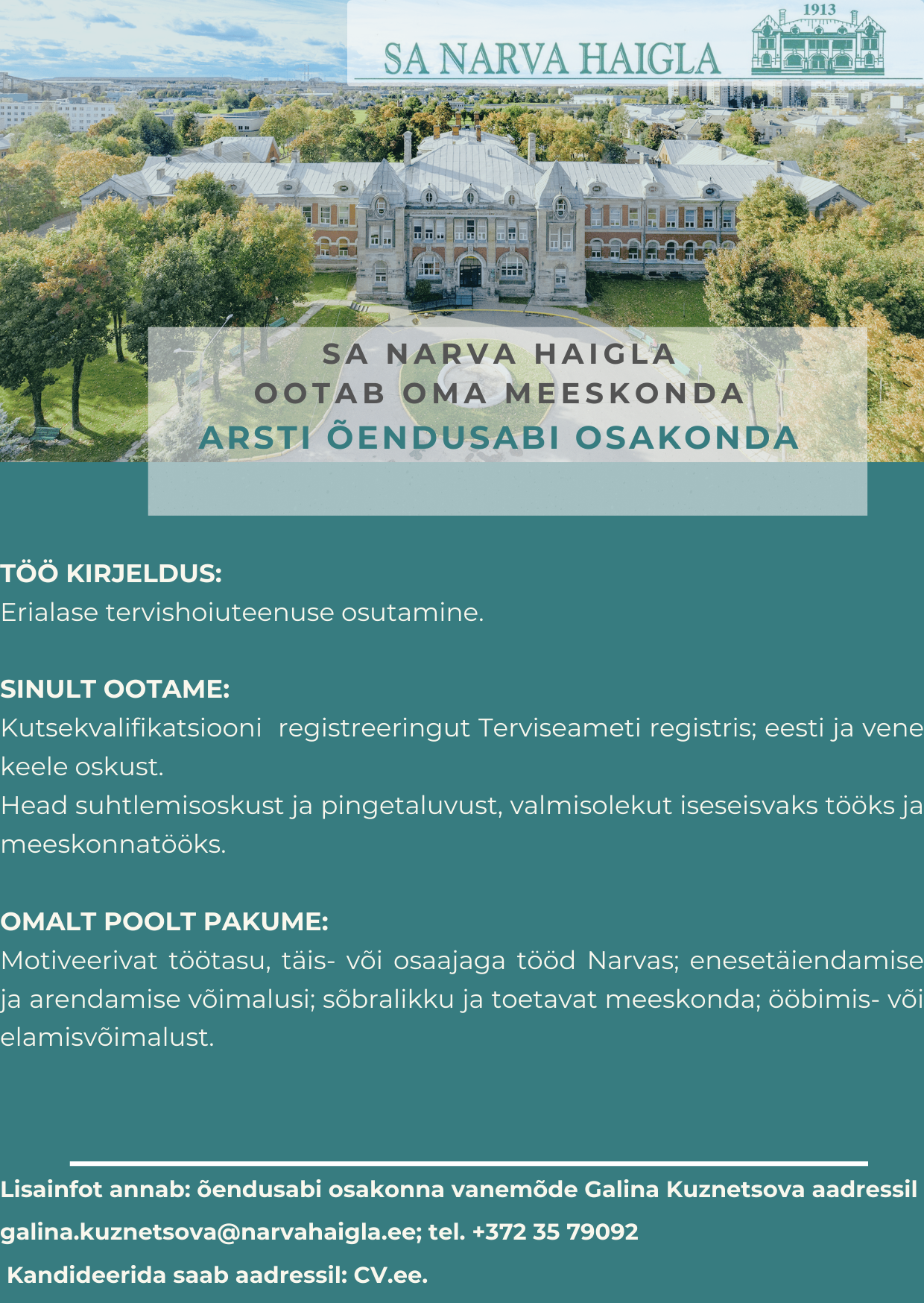 Narva Haigla missiooniks on teaduspõhise meditsiini kestmine ja areng Ida-Virumaal koostöös