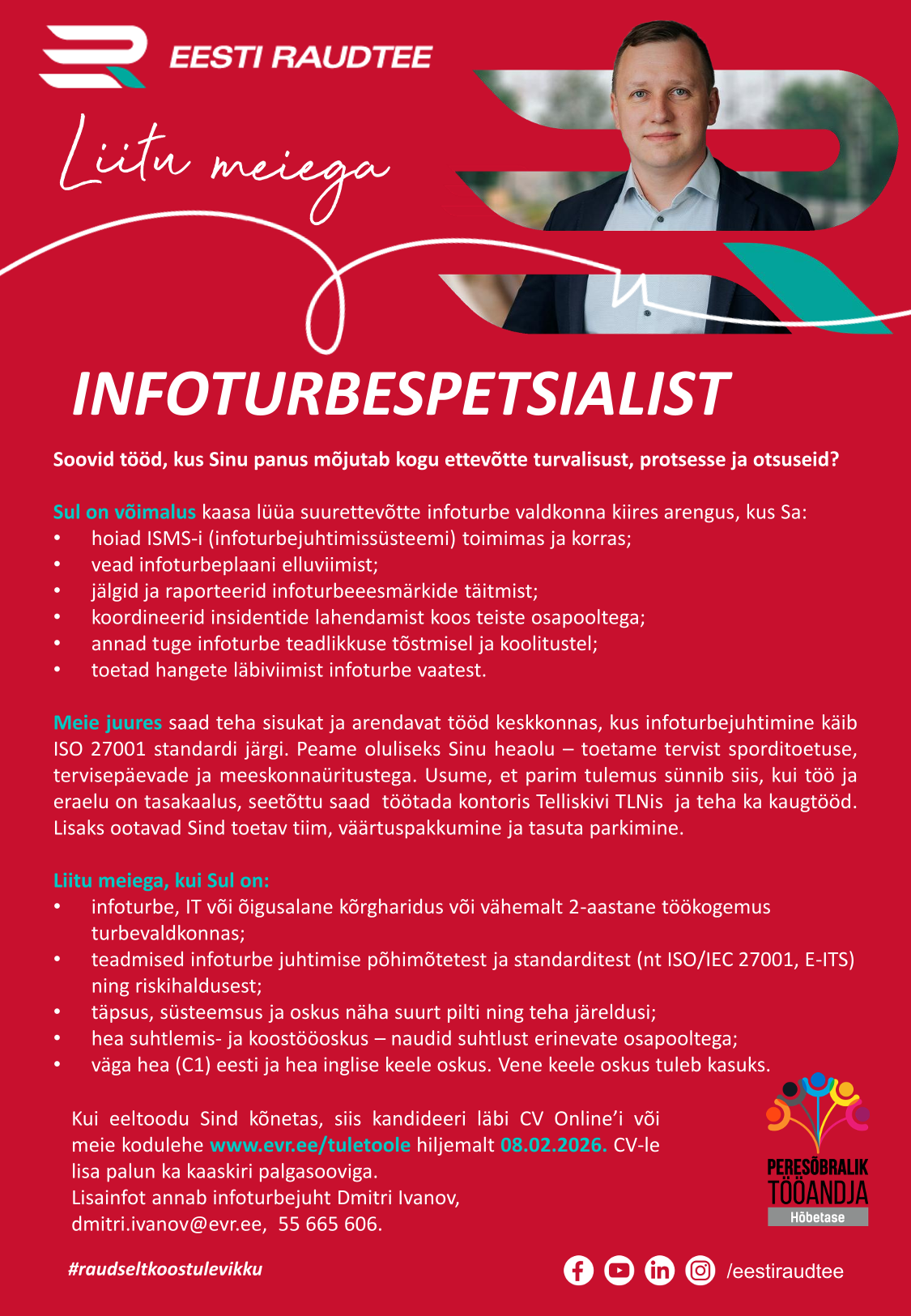 •infoturbe, IT või õigusalane kõrgharidus või vähemalt 2-aastane töökogemus turbevaldkonnas;