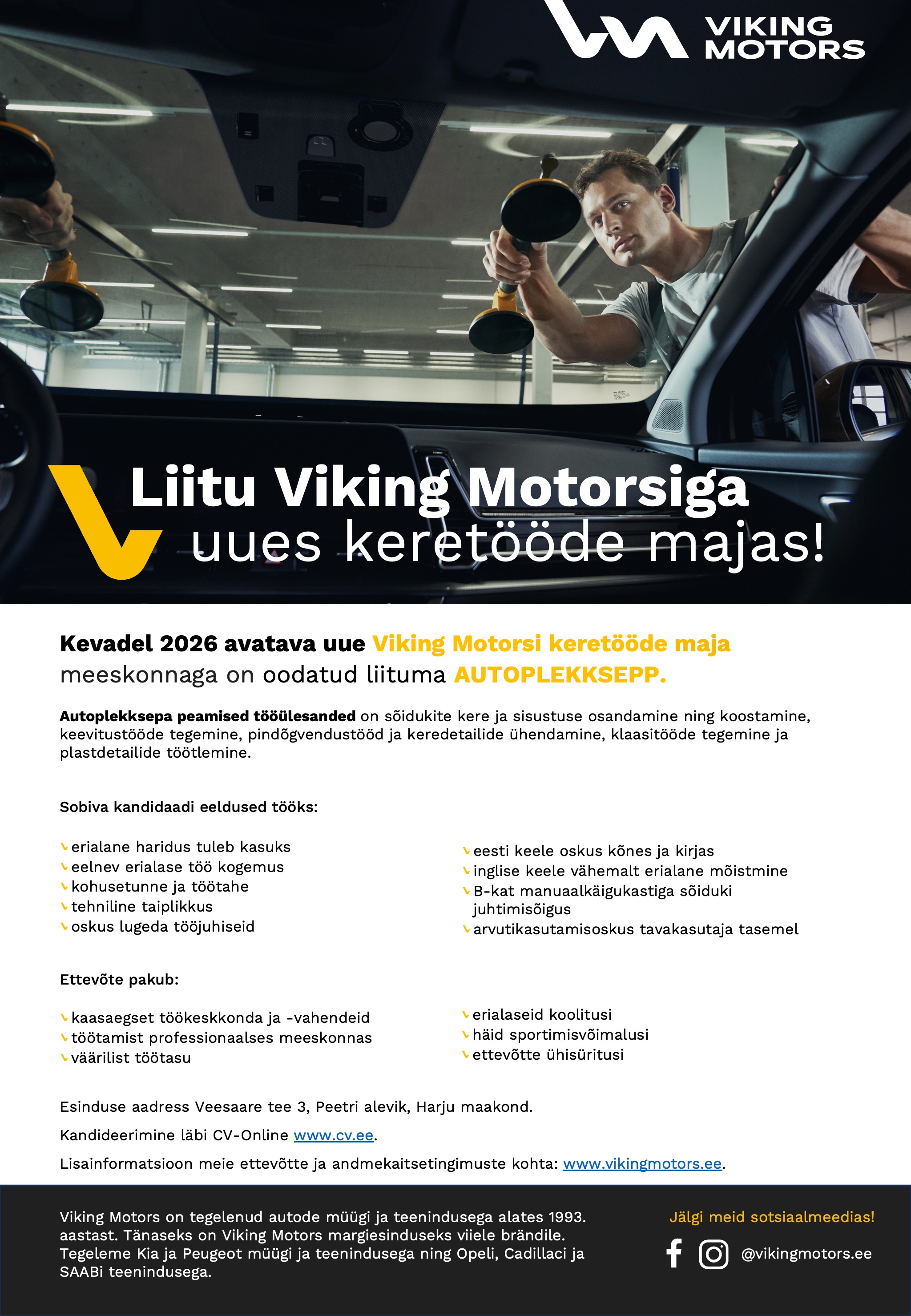 Kevadel 2026 avame uue kaasaegse keretööde maja Peetris, Rae vallas. Maja asub eelmisel aastal avatud Eesti suurima Kia esinduse kõrval.