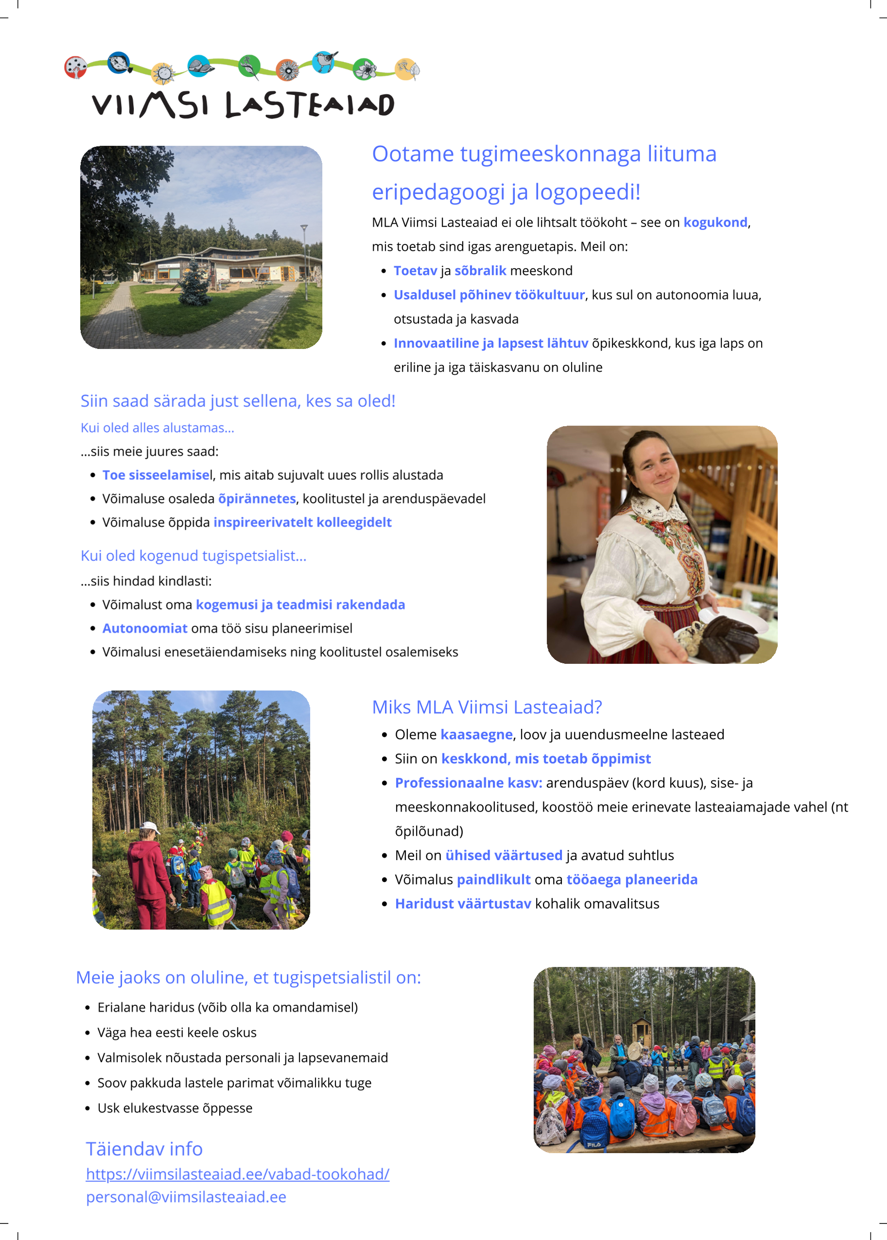 MLA Viimsi Lasteaiad hõlmab enda all üheksa lasteaiamaja Viimsi vallas.