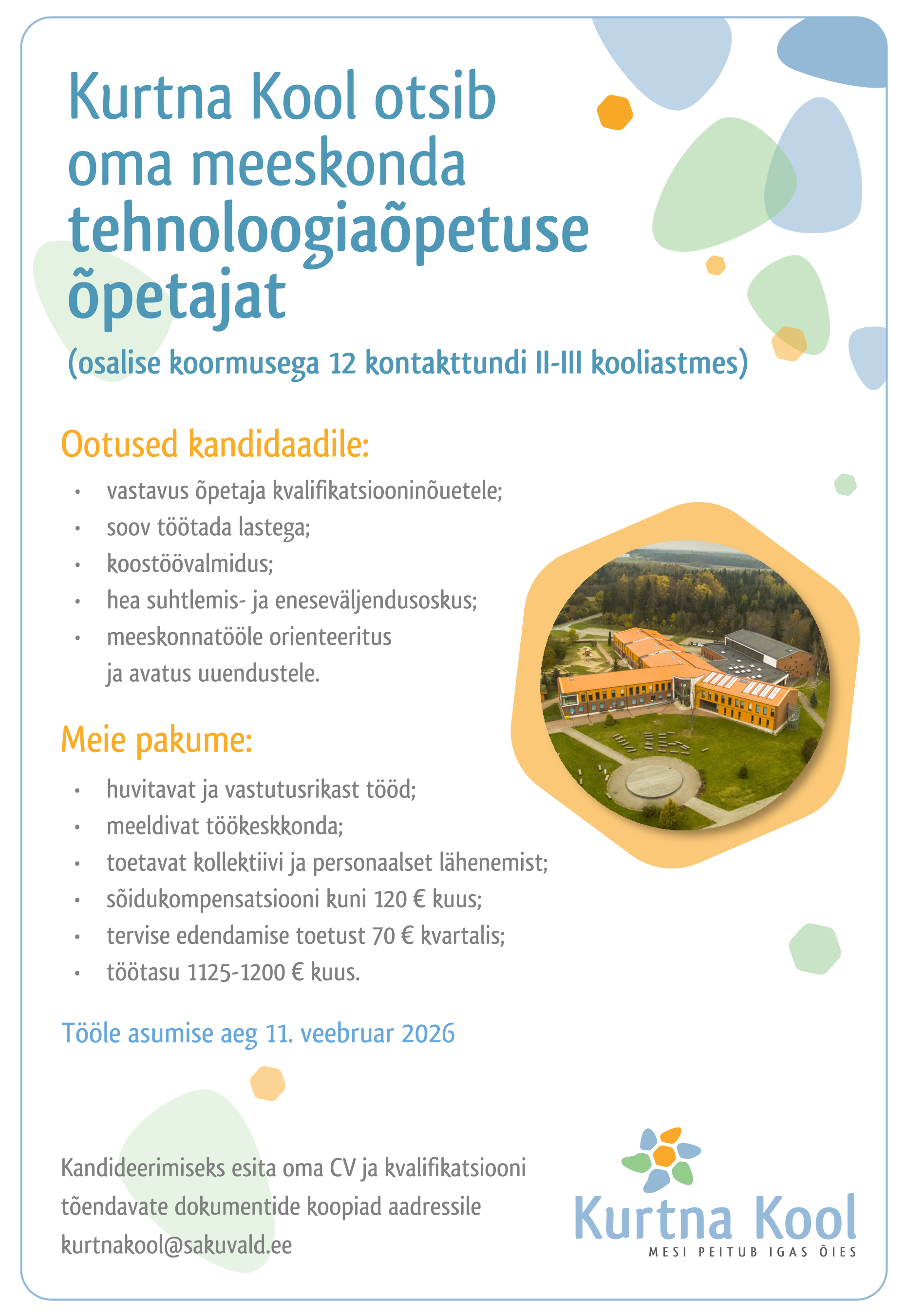 - meeskonnatööle orienteeritus ja avatus uuendustele.