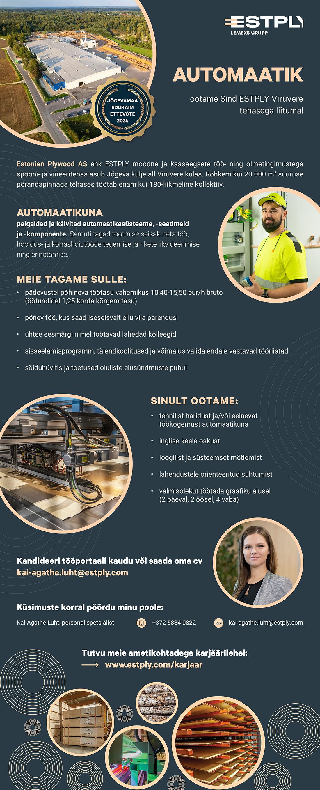 - tehnilist haridust ja/või eelnevat töökogemust automaatikuna