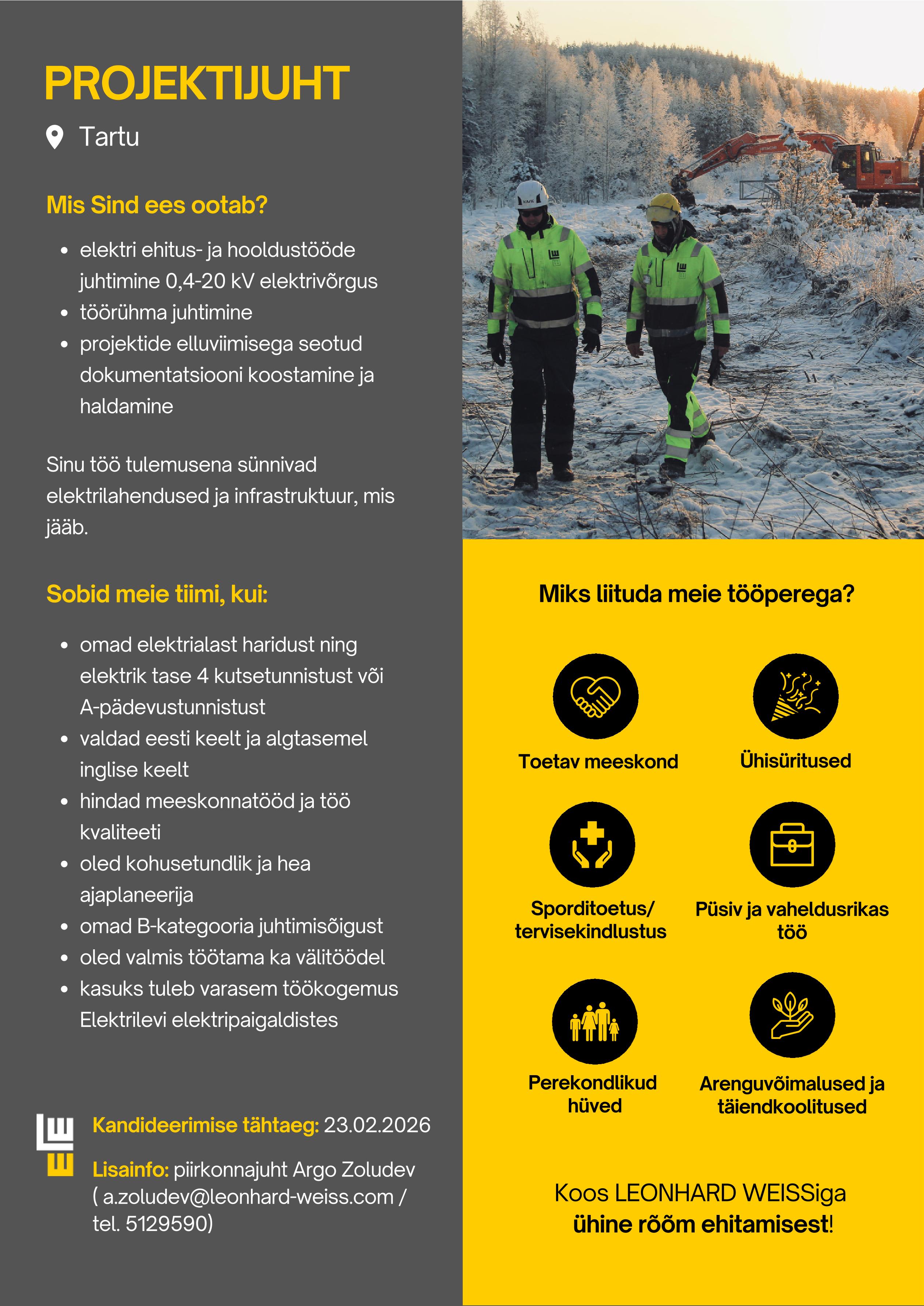 LEONHARD WEISS on Baltimaades ja Skandinaavias tegutsev pikaajalise kogemusega rööbasteede, teede ja elektrivõrkude projekteerimis-, ehitus- ja hooldusettevõte. Kuulume 1900. aastal loodud Saksa pereettevõtte LEONHARD WEISS gruppi ning oleme usaldusväärne partner meie töötajatele ja klientidele. Meie juhtpõhimõte on Tundke rõõmu ehitamisest koos LEONHARD WEISSIGA“.
