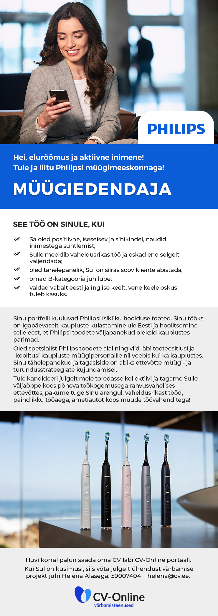 Philips on rahvusvaheline tervisetehnoloogia ettevõte, mis keskendub inimeste tervise ja heaolu parandamisele uuenduslike toodete ja teenuste kaudu. Ettevõte tegutseb enam kui 100 riigis ning on tuntud oma kõrgekvaliteediliste meditsiiniseadmete, koduhooldustoodete ja tervisetehnoloogiliste lahenduste poolest. Philips väärtustab jätkusuutlikkust, uuendusmeelsust ja pühendumust inimeste elukvaliteedi tõstmisele.