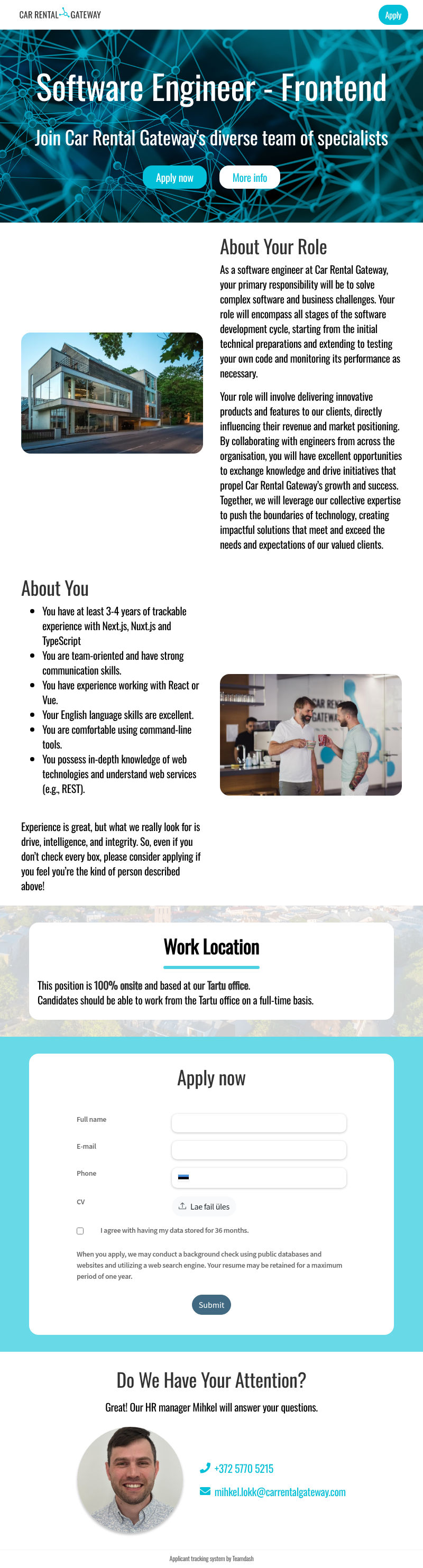 Car Rental Gateway is an innovative company where engineers work together to solve complex software and business challenges, delivering products and features to clients in the car rental industry. Our Tartu office is a key location where specialists collaborate to address revenue and market positioning matters for our clients.