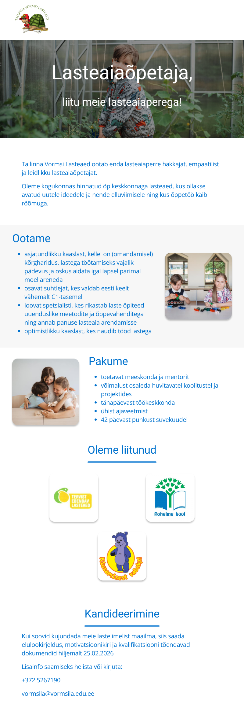 Tallinna Rõõmupesa Lasteaia lasteaiaõpetaja